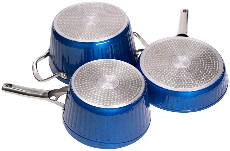 В данный момент этот товар отсутствует в продаже. Возможно, у нас найдется аналогичный или похожий товар здесь. Набор посуды Galaxy line GL9515 включает 5 предметов: кастрюля объемом 4,6 л. с крышкой, ковш объемом 2,7 л с крышкой, сковорода диаметром 24 см. Бесспорным преимуществом данного набора являются толстые стенки и дно. Вся посуда выполнена из литого высококачественного алюминия толщиной 3,5 мм, что обеспечивает долгий срок службы. Постепенный и равномерный нагрев позволяет готовить вкусные ароматные блюда, сохраняя максимальное количество витаминов и полезных микроэлементов.