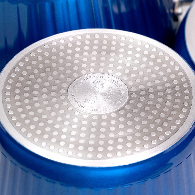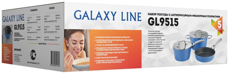 Набор посуды Galaxy line имеет антипригарное мраморное покрытие, которое исключает подгорание и прилипание пищи, позволяя готовить с минимальным количеством масла. Дополнительным преимуществом набора посуды Galaxy line GL9515 является универсальная крышка, которая подходит как для кастрюли, так и для сковороды. Крышки в наборе выполнены из термостойкого стекла с отверстием для выхода пара. Такая конструкция исключает образование конденсата и позволяет контролировать процесс приготовления. Все ручки в наборе посуды GL9515 имеют стильную форму и выполнены из долговечной нержавеющей стали. Ручки прикручены, а не приварены, что обеспечивает долгий срок службы и отсутствие нагрева. Термоаккумулирующее дно подходит для всех типов плит, в т.ч. индукционных. Яркий, стильный и практичный набор посуды Galaxy line GL9515 идеально впишется в интерьер Вашей кухни.