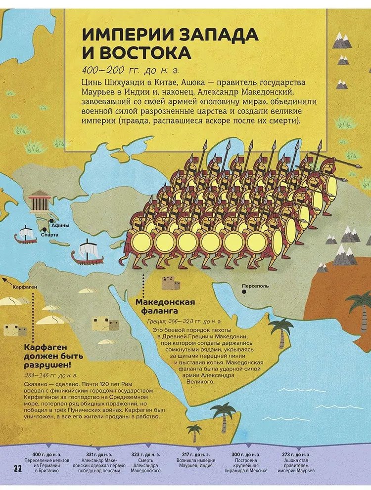 От первых городов до громадных империй: как всё начиналосьВ данный момент этот товар отсутствует в продаже. Возможно, у нас найдется аналогичный или похожий товар здесь. Серия: Лента истории Лента истории — серия книг для детей и взрослых об истории мира от древности до современности. Факты, проиллюстрированные забавными рисунками, помогут быстро составить представление о значимых вехах в истории человечества. Ничего лишнего — только самое основное и важное: имена людей, повлиявших на ход истории, великие сражения, судьбоносные события, знаменитые артефакты. Эта книга проведет вас по дороге истории от эпохи расселения первых людей по планете до времён расцвета и падения Римской империи. |