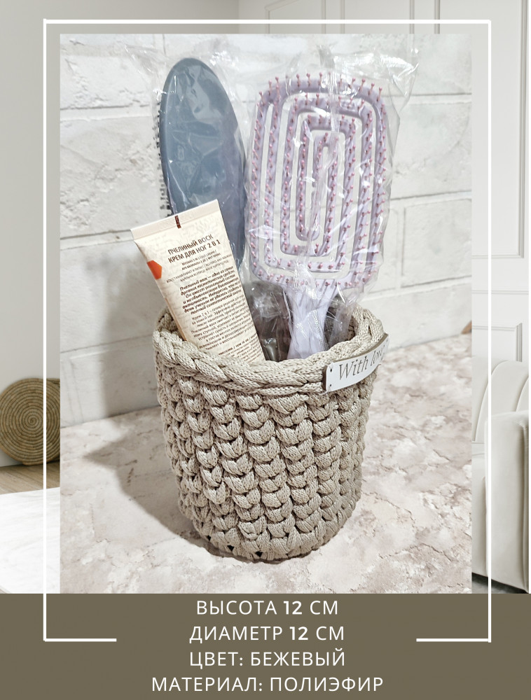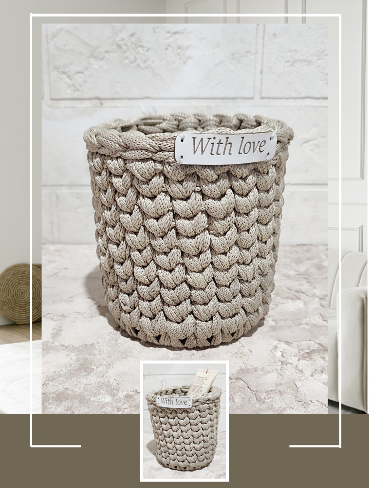 Корзинки для хранения — это не просто хранители порядка в доме. Корзинки вязаные создаются для тех, кто обожает стильные интерьерные вещи ручной работы. Корзинка для мелочей каждый день будет радовать глаз, создавать неповторимый уют, присущий только Вашему дому и привлекать гостей. Корзинка для хранения выполнена из полиэфирного шнура. Корзинка вязаная имеет в основе деревянное дно из фанеры толщиной 6мм. Допускается мытье водой или уход влажной тканью. Корзины для хранения ручной работы и изготовлены из экологически чистого материала. Органайзер для хранения идеально подойдет для любого уголка дома: коридора, спальни, гостиной или балкона. Набор корзин для хранения отлично подойдет для помещения с высокой влажностью, что значительно расширяет их функции. Корзина допускает ручную стирку или уход влажной тканью. Такая корзина для хранения подойдет в качестве подарка маме, сестре, подруге, бабушке или коллеге. Корзинка очень эстетична и практична. Такого плана вязаная корзинка может использоваться для хранения косметики, аксессуаров, предметов гигиены, набор для творчества и многого другого.