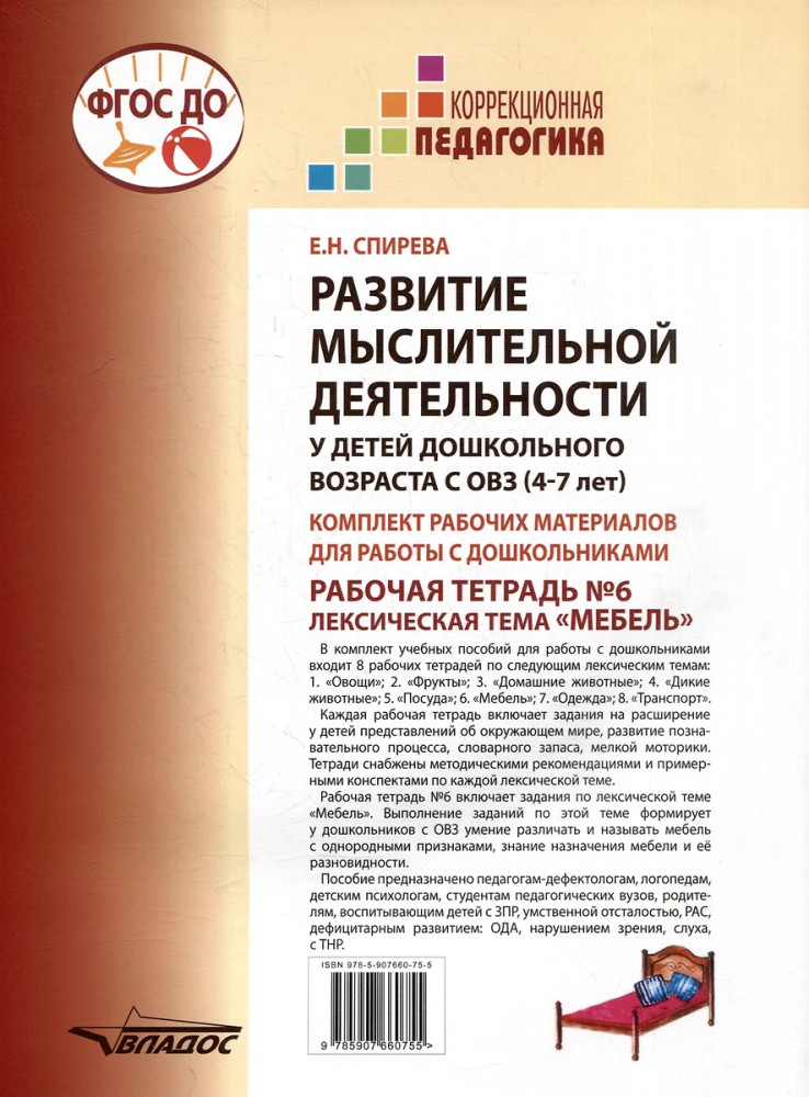 Развитие мыслительной деятельности у детей дошкольного возраста с ОВЗ (4-7 лет). Рабочая тетрадь №6. Лексическая тема «Мебель»+77