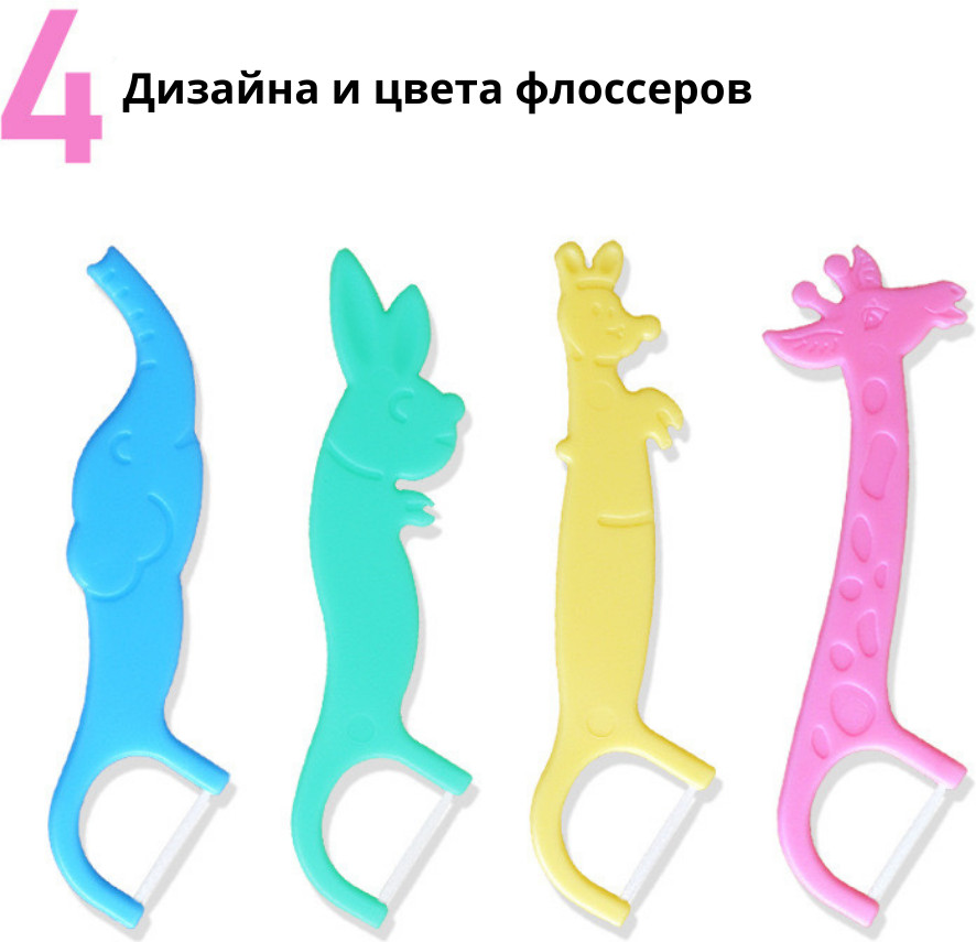 Набор флоссеров детскихВ данный момент этот товар отсутствует в продаже. Возможно, у нас найдется аналогичный или похожий товар здесь. Научить ребёнка правильно чистить зубы — трудная задача. Чтобы очистить все крохотные межзубные промежутки вашего малыша идеально подойдут детские флоссеры с зубной нитью. Яркий флосстик для зубов имеют небольшой размер и эргономичную форму — утолщённая рукоятка удобно ложиться в маленькую ручку. Мягкая вощёная нить абсолютно безопасна и качественно очищает между зубов . В наборе сразу 4 разноцветных флостика. В комплект так же входит пластиковый контейнер, в котором очень удобно хранить и транспортировать флоссеры. |