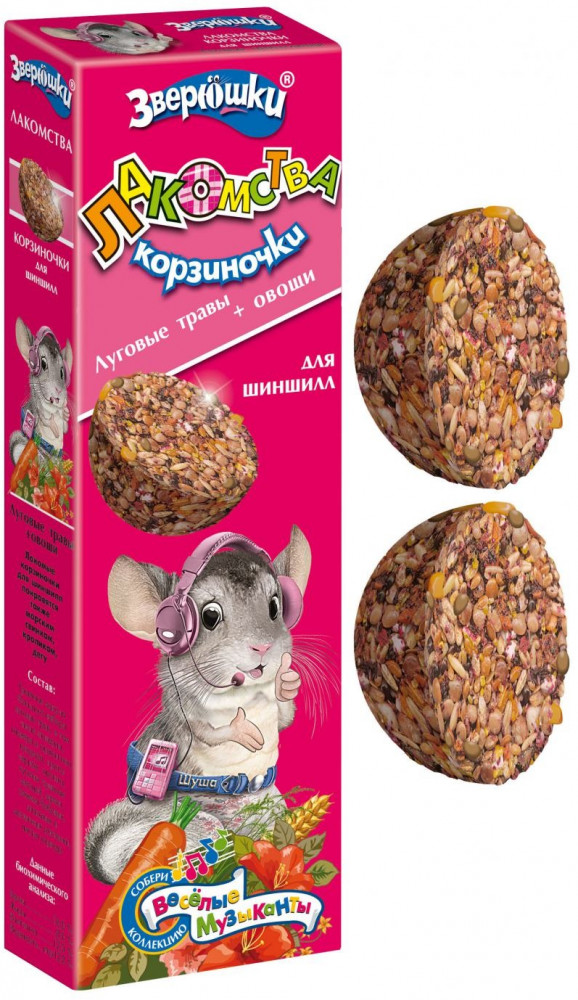 Зверюшки Лакомства-корзиночки для шиншилл «Луговые травы и овощи»-20% +26