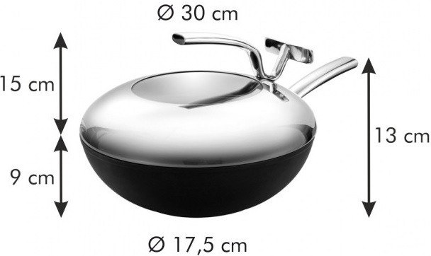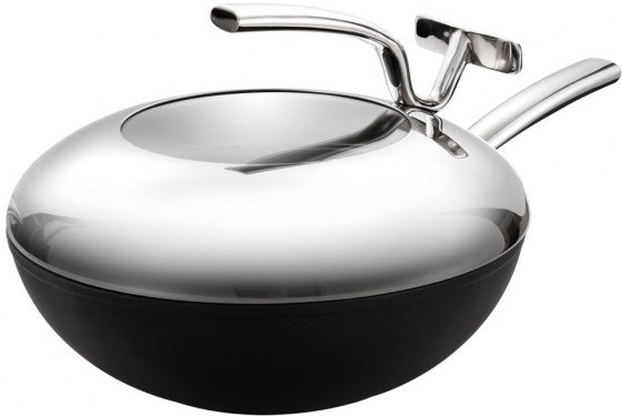 Роскошный вок с массивной крышкой из нержавеющей стали и уникальным морщинистым антипригарным покрытием, обладающим свойствами неполированного натурального камня. На специальной структурированной поверхности пища не пережаривается, готовится равномерно, сохраняет естественный вкус и сочность, а для приготовления можно использовать совсем немного жира. Вок подходит для металлических жаровен и устойчив к высоким температурам. Его можно использовать в печах для выпечки (до 200 °C с накрытой крышкой). Предназначен для всех типов плит, включая индукционные.