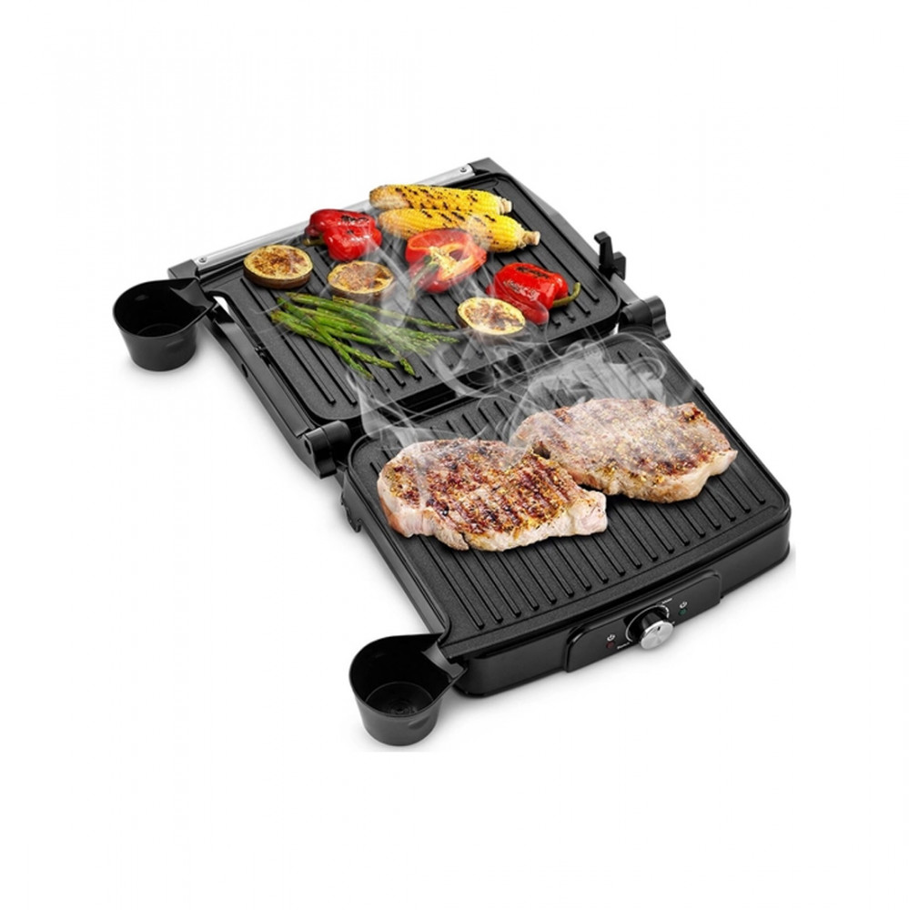 Электрогриль КТ-1655 предназначен для приготовления мяса, рыбы, овощей, сосисок, бутербродов, сэндвичей, гренок, тостов! Высокая t способствует быстрому приготовлению продуктов, а ребристая поверхность — появлению на них характерного «полосатого» рисунка. Панели изготовлены из алюминия с нанесённым антипригарным покрытием. Благодаря конструкции панелей со встроенными нагревателями, нагрев и передача t на поверхность происходит эффективнее, поэтому время прогрева и приготовления сокращается.