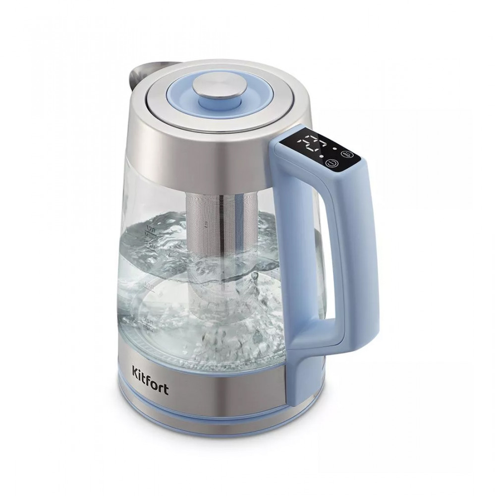 Электрический чайник Kitfort КТ-6617 способен не только вскипятить воду, но и нагреть её до нужной температуры в диапазоне от 40 до 90 °С. Возможность выбора температуры нагрева в сочетании с встроенным заварочным фильтром делает его идеальным для заваривания различных сортов чая прямо в чайнике. На ручке расположена сенсорная панель управления с дисплеем, где можно задать температуру нагрева и наблюдать за текущей температурой воды. После достижения заданной температуры чайник поддерживает её в течение 2 часов.