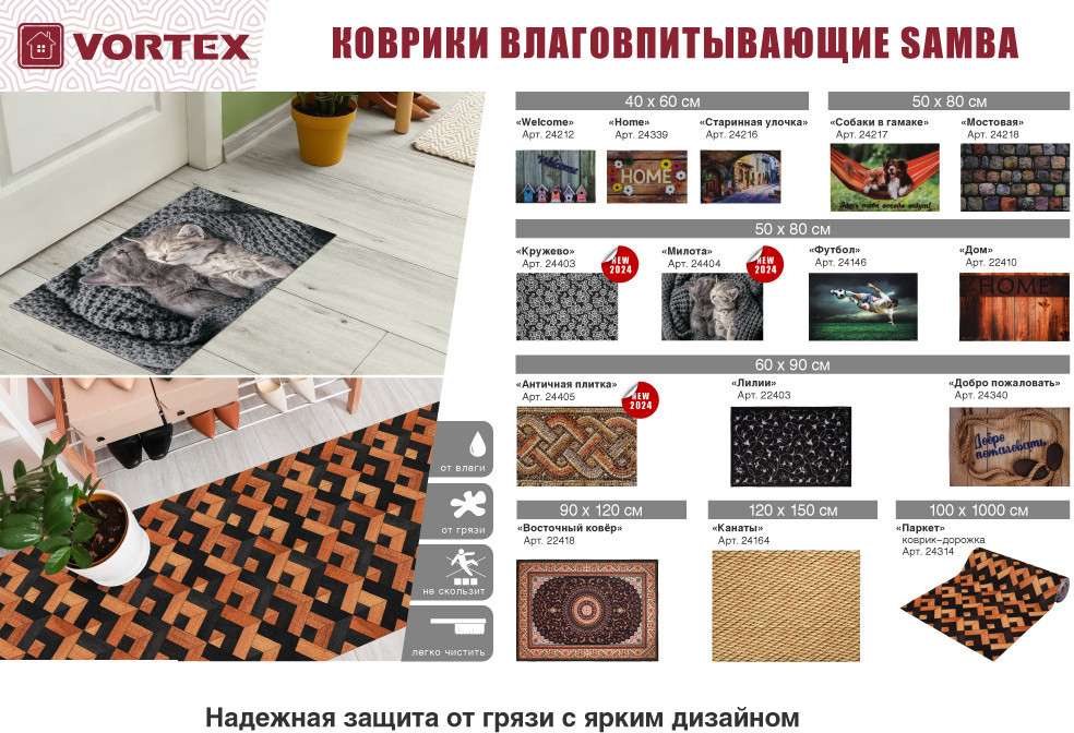 VORTEX Коврик влаговпитывающий «Античная плитка»+137