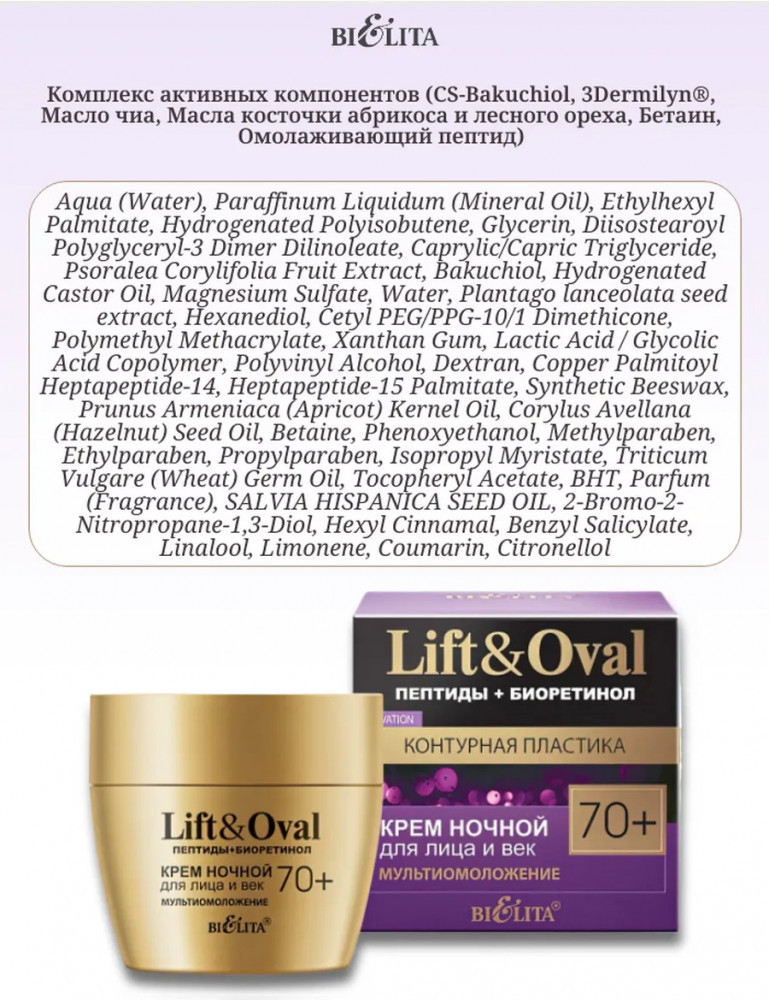 Bielita Крем для лица и век ночной «Lift&Oval 70+»
