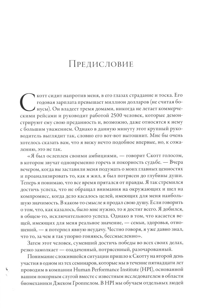 | Джим Лоэр, председатель и исполнительный директор Human Performance Institute, широко известен своими работами в области психологии высоких результатов. Среди клиентов его тренировочного центра сотни спортсменов мирового класса, полиция и секретные службы, команды спасателей и спецподразделения ФБР. С 1993 г. центр с успехом применяет на практике самостоятельно разработанные принципы подготовки не только известных атлетов, но и менеджеров высшего звена. |