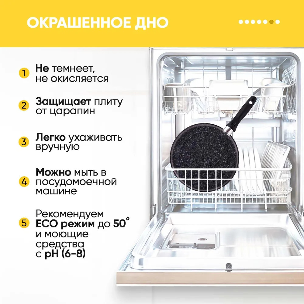 Самый популярный и незаменимый предмет на кухне – это классическая глубокая литая сковорода с антипригарным покрытием. Литая посуда равномерно прогревается и достаточно долго сохраняет тепло, она не такая тяжелая, как чугунная сковорода. Подходит для частого применения, идеальна для жарки и тушения, для приготовления курицы, фарша, филе, котлет, мяса, картошки, сырников, овощей, драников, печени, грибов – и все это при возможности использования минимального количества масла или совсем без него. Благодаря толстому дну и стенкам продукты в сковороде равномерно прогреваются, а также сковорода сохраняет остаточное тепло в течение длительного времени. Сковорода ТМ "Традиция готовить с любовью" абсолютно безопасна для здоровья, на ее поверхность нанесено высококачественное минеральное покрытие на водной основе. Современная 5-ти слойная система покрытия защищает продукты от пригорания. Антипригарное покрытие на водной основе не содержит PFOA, это экологично и безопасно.