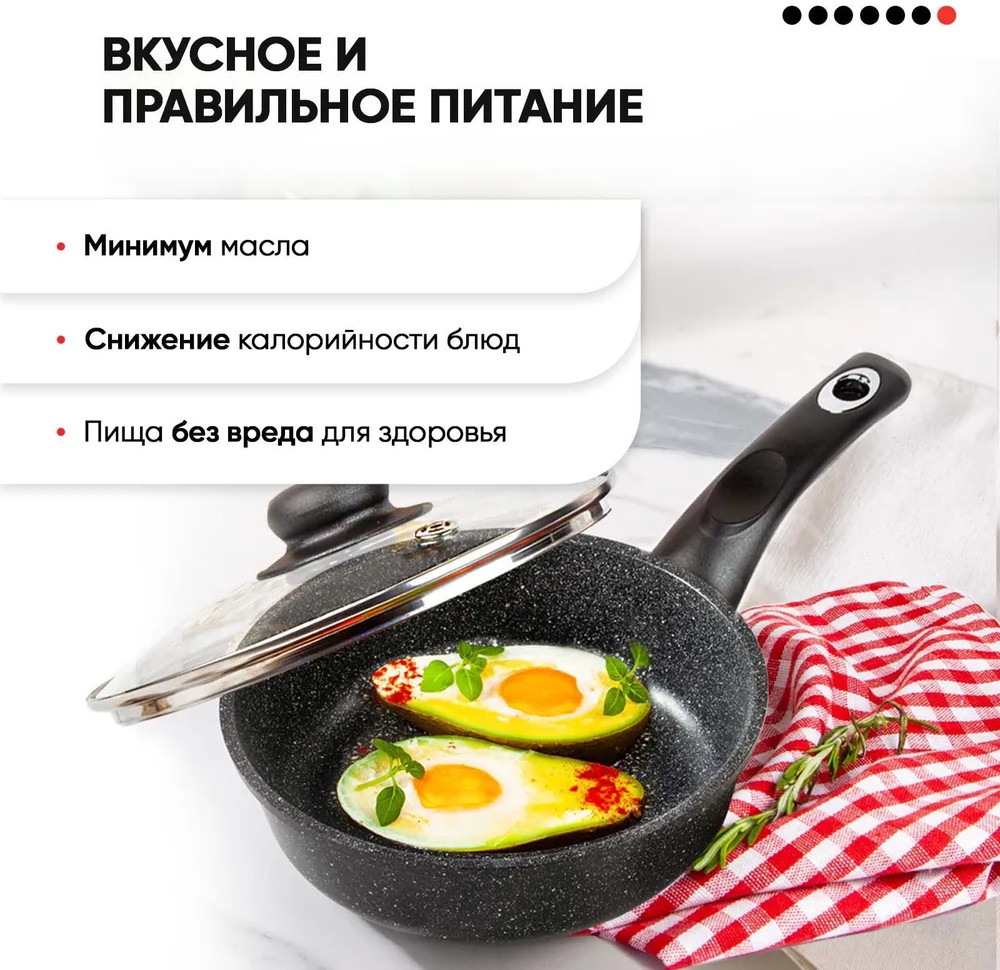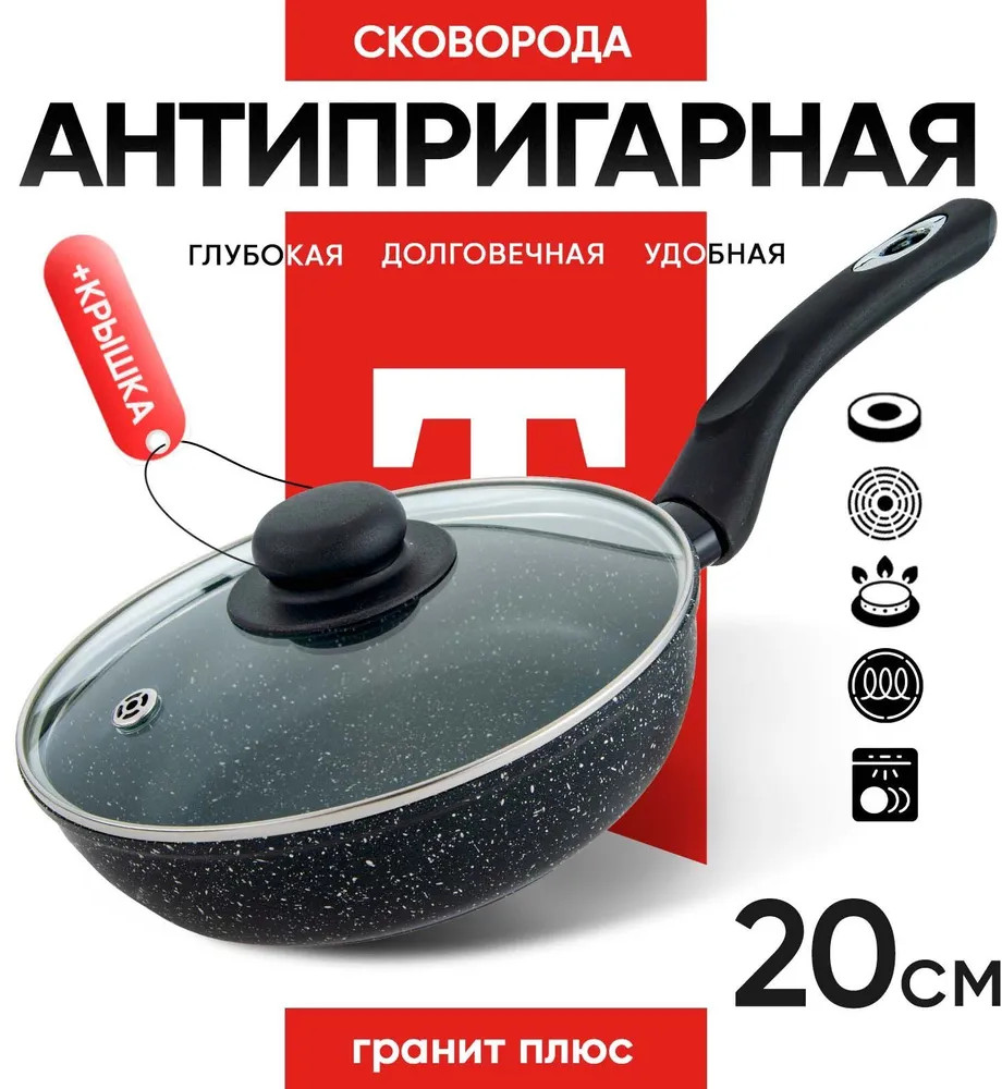 Сковороды со стеклянной крышкой серии «Гранит+» изготовлены из литого алюминия, что обеспечивает равномерное распределение тепла для идеального приготовления блюд. В этой серии использованы эксклюзивный корпус и современное безопасное антипригарное покрытие нового поколения. Сковороды идеально подходят для жарки, обжаривания, а также для запекания в духовке в случае оснащения съемной ручкой. Каждая сковорода имеет эргономичный корпус с прочной ручкой для удобного использования. В серии представлены различные размеры, чтобы удовлетворить потребности приготовления различных блюд. С индукционным дном и возможностью использования на всех видах плит, включая газовые, электрические и даже индукционные, эти сковороды станут незаменимым предметом на вашей кухне.