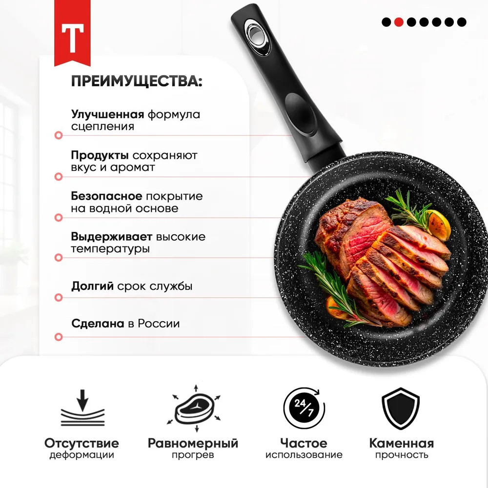 Благодаря качественным материалам и устойчивости к высоким температурам, сковороды серии «Гранит+» обеспечивают долгий срок службы и сохраняют свой внешний вид на протяжении долгого времени. Изделия легко моются вручную с помощью мягкой губки и моющего средства или в посудомоечной машине, что делает их уход простым и удобным. На производстве каждая сковорода из этой серии проходит строгий контроль качества, гарантируя надежность и безопасность при использовании. Правильный выбор кухонной посуды — залог успешного приготовления блюд. Приобретая литые сковороды ТМ «Традиция готовить с любовью», вы инвестируете в качество и удобство, что принесет удовольствие при использовании и уверенность на кухне. Создавайте вкусные блюда с серией Гранит плюс — вашим надежным помощником на кухне!