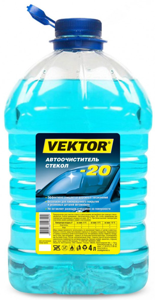 Предназначен для очистки стекол и светотехники автомобилей при помощи омывателя. Продукт готов к применению при температуре до −20°С.