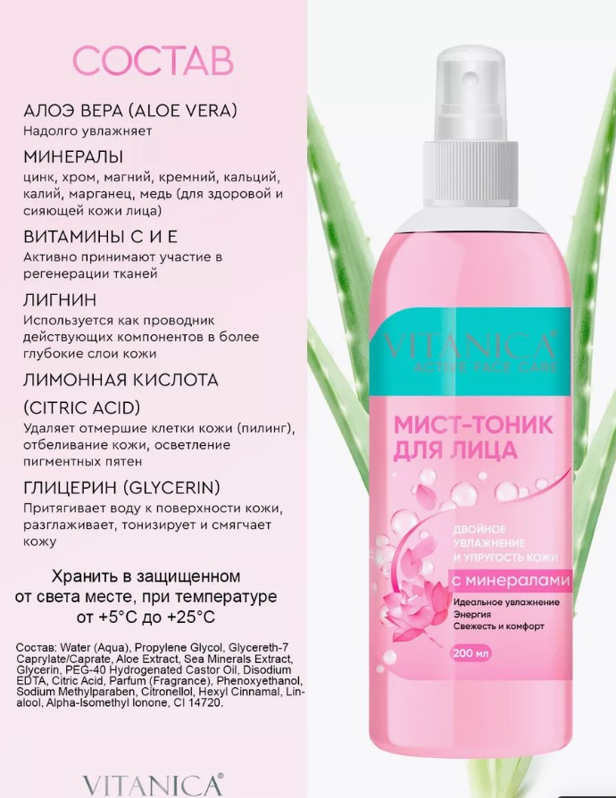 Vitanica Мист-тоник для сухой кожи лица с минералами