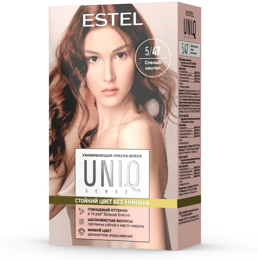 Краска-блеск для волос без аммиака, оттенок 5/47 Светлый шатен, медно-коричневый | Uniq sense | Estel