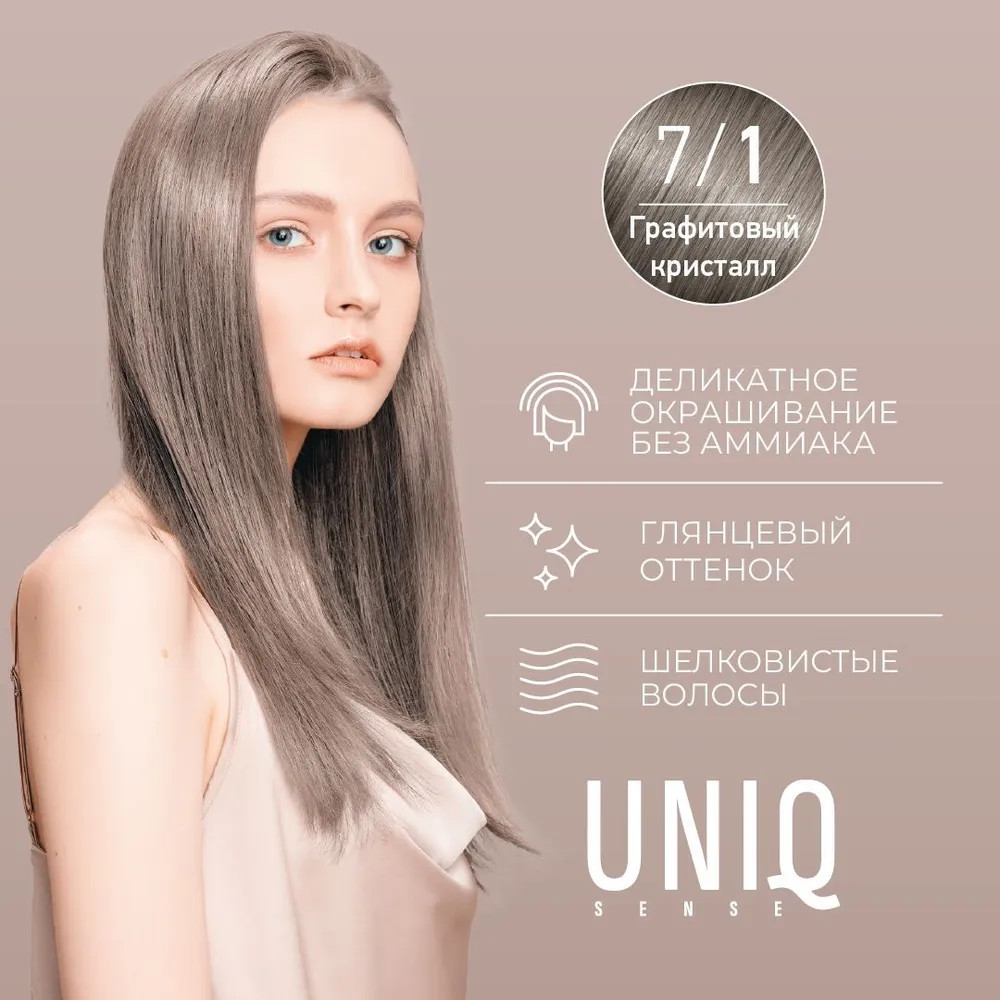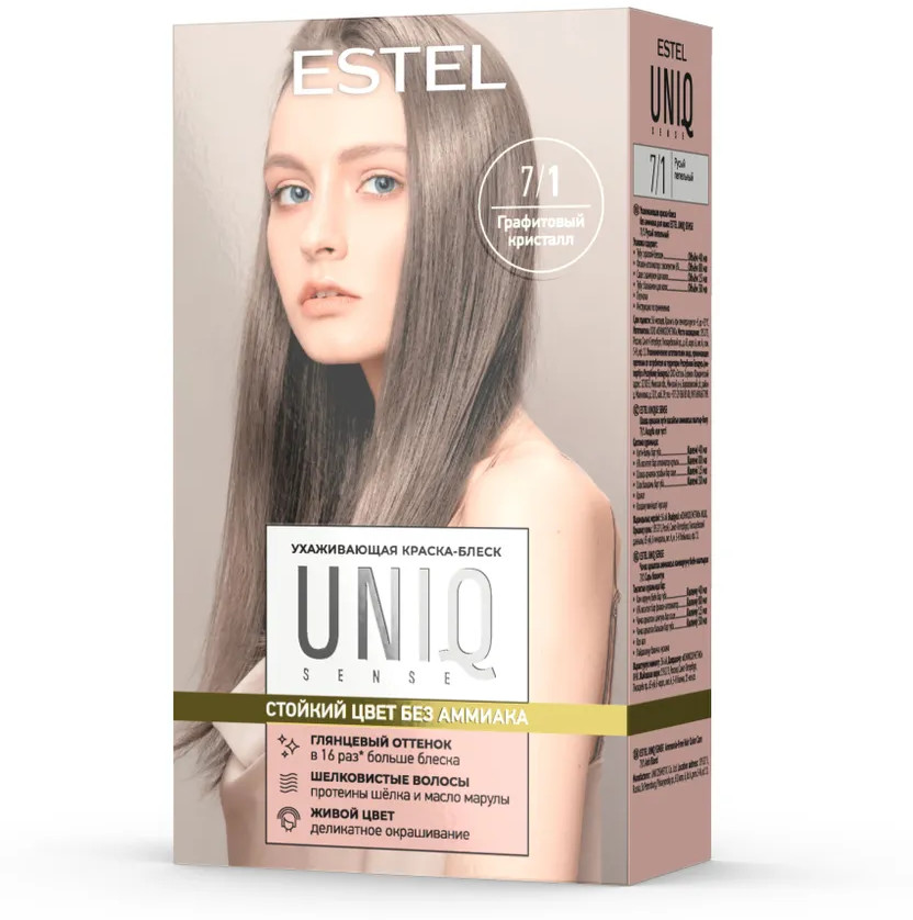 Краска-блеск для волос без аммиака, оттенок 7/1 Русый пепельный, графитовый кристалл | Uniq sense | Estel