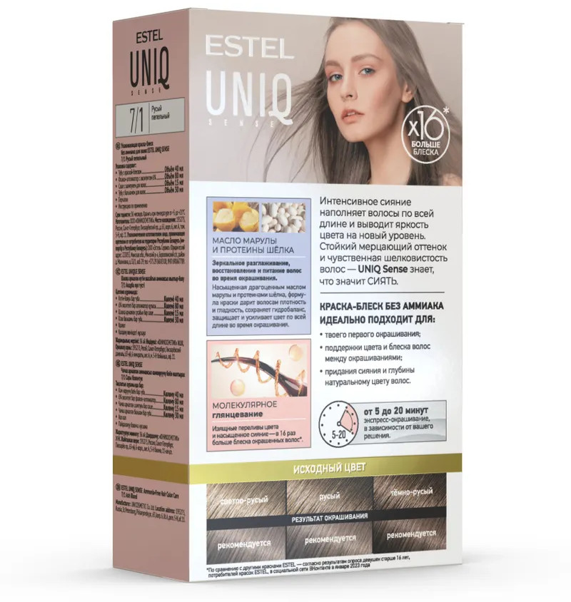 Краска Эстель дарит деликатное окрашивание без аммиака, глянцевый оттенок и щелковистые волосы. Краска для волос профессиональная наполняет сиянием волосы по всей длине и выводит яркость цвета на новый уровень. Стойкий мерцающий оттенок и чувственная шелковистость волос — Uniq Sense знает, что значит Сиять.
