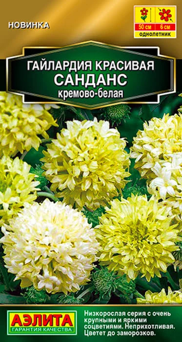 Аэлита Гайлардия «Санданс кремово-белая»В данный момент этот товар отсутствует в продаже. Возможно, у нас найдется аналогичный или похожий товар здесь. Серия: Золотая серия Новая серия низкорослой однолетней Гайлардии «Санданс» (Sundance) европейской селекции. Высокоустойчива к капризам по годы. Неприхотлива и очень декоративна до осенних заморозков. На протяжении лета растения непрерывно образуют пышные махровые шаровидные соцветия 5-6 см. Компактные кустики высотой около 40- 50 см эффектно выглядят при высадке группами в рабатках и бордюрах. Это великолепная срезочная и горшечная культура, надолго сохраняющая прекрасный облик. Гайлардия предпочитает солнечные участки с легкими, дренированными, плодородными почвами, без застоя и избытка влаги. Возможен ранневесенний прямой посев семян в открытый грунт. Всходы могут появиться через 10-12 дней. Старые соцветия следует удалять. |