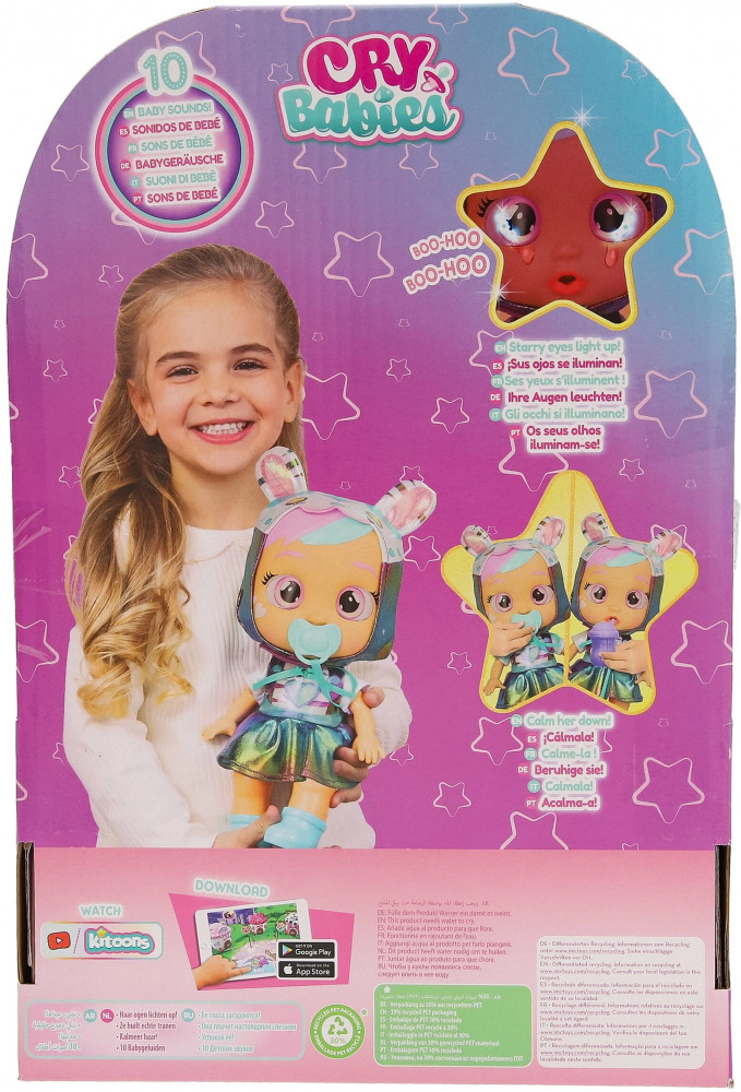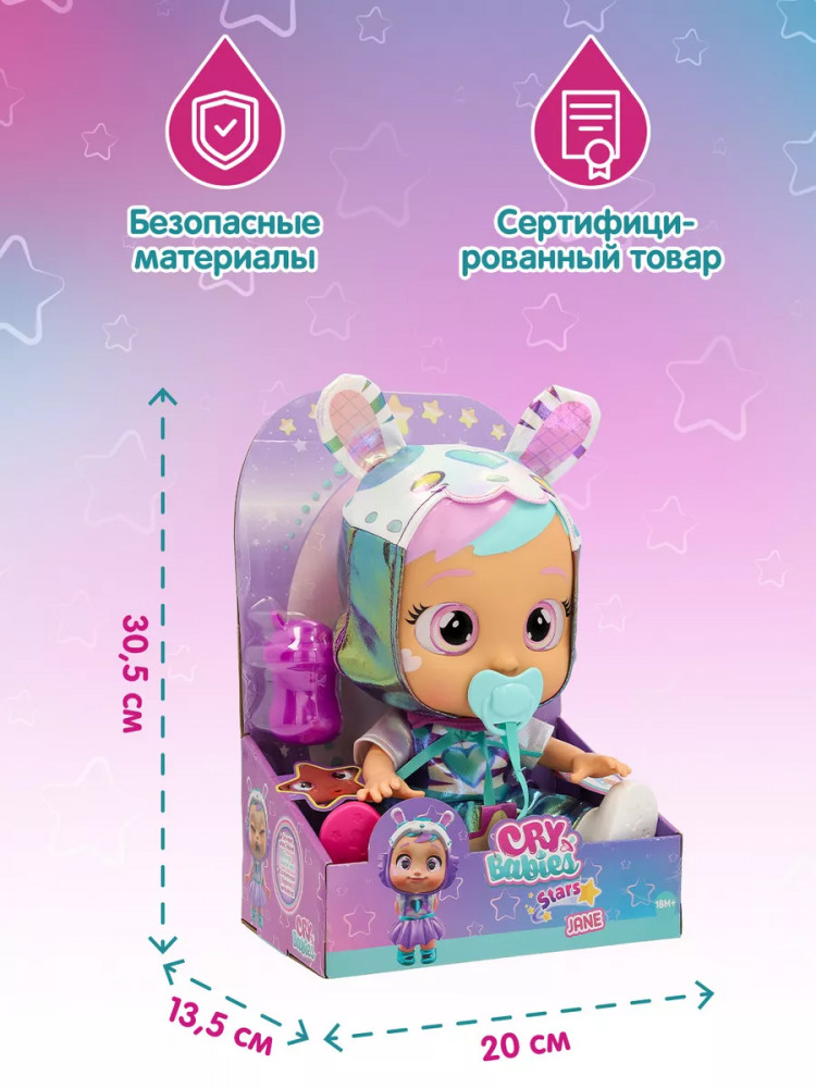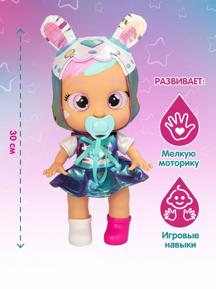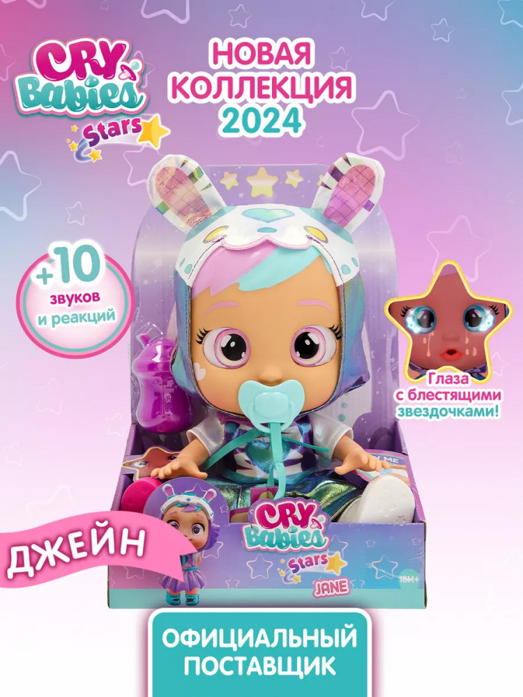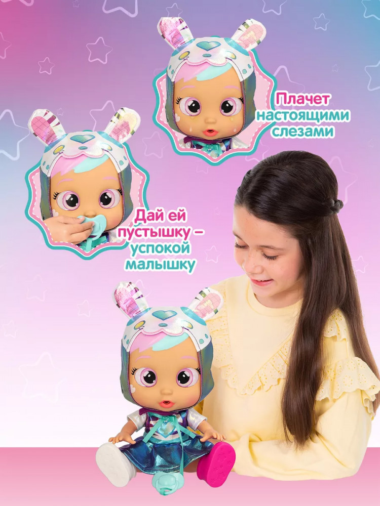 Cry Babies Кукла интерактивная «Джейн»В данный момент этот товар отсутствует в продаже. Возможно, у нас найдется аналогичный или похожий товар здесь. Серия: Stars Кукла Stars Джейн — космическая модница, которая прибыла из далекой Галактики на новую планету, чтобы дарить радость и веселье! Если забрать у неё пустышку, Джейн начнёт грустно всхлипывать и плакать настоящими слезами, а её глазки засияют яркими звездочками! Чтобы успокоить нашу малышку, нужно просто вернуть ей пустышку. |