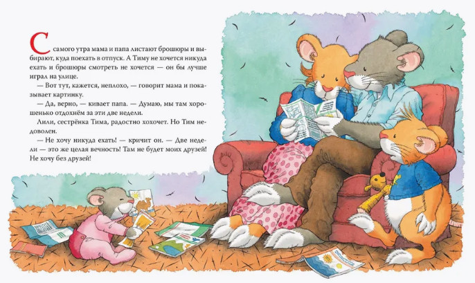 💳 Оплатить за товар можно при получении 🇰🇿 Есть бесплатная доставка по Казахстану от 1 дня 🎁 Копите бонусы с каждой покупки Серия: Мышонок Тим Серия книг про смешного и обаятельного мышонка Тима поможет малышам понимать, признавать и называть свои чувства, научиться общаться со сверстниками и справляться с трудными ситуациями. Родители мышонка Тима планируют всей семьей поехать в отпуск. Вот только Тим против! Ехать долго и скучно. Придется расстаться с друзьями на целых две недели! Да еще и игрушки оставить дома. Вдобавок там будет другая еда, другая кроватка... Но Тим еще не знает, что семейная поездка окажется полна ярких впечатлений и новых знакомств. |