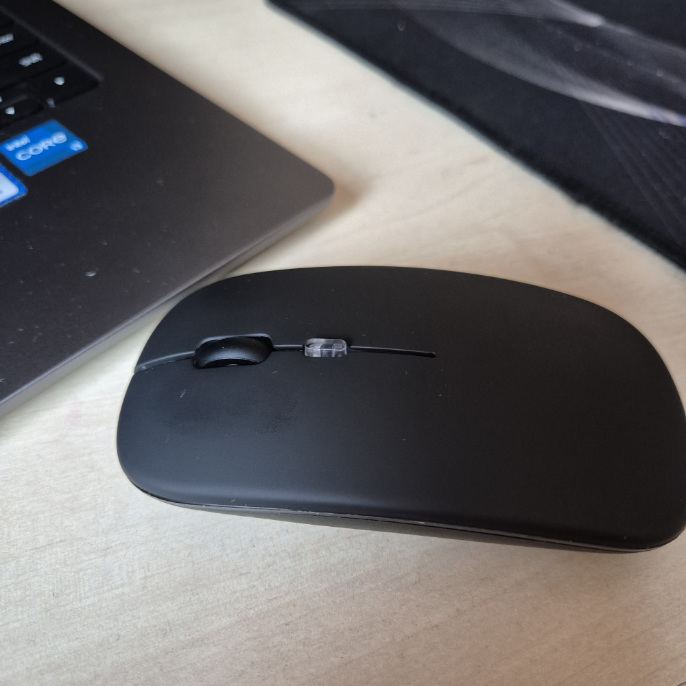 Действительно бесшумная. Заряжается через шнур. Можно использовать как обычную проводную мышку.