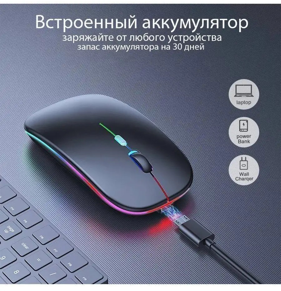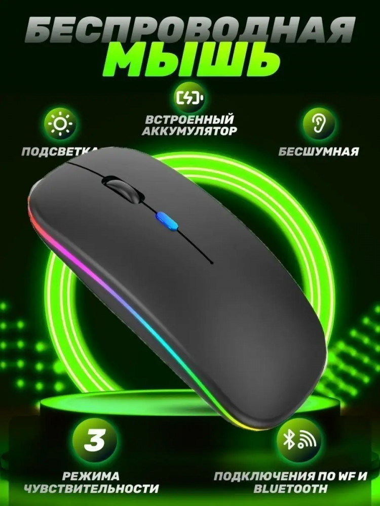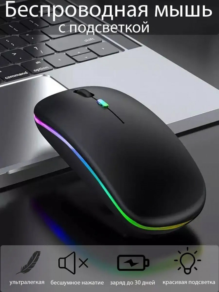 Мышь беспроводная бесшумная с подсветкой-30% +25 бесшумная удобная форма отсутствует Bluetooth скачущий скролл короткая автономность