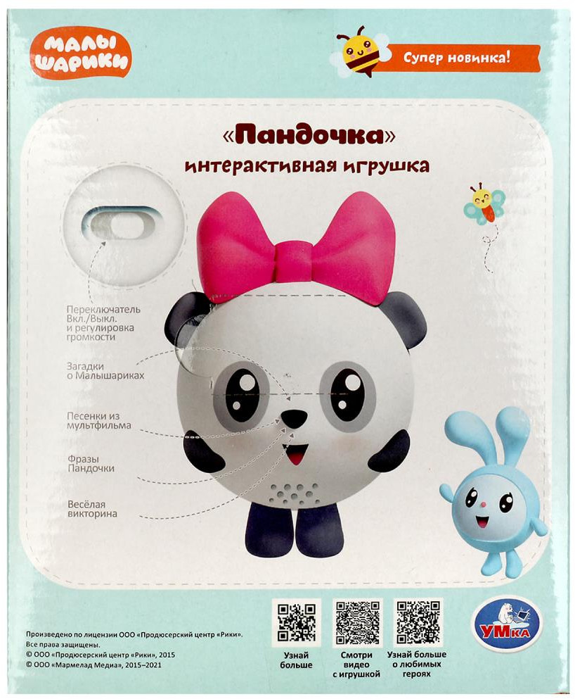 💳 Оплатить за товар можно при получении 🇰🇿 Есть бесплатная доставка по Казахстану от 1 дня 🎁 Копите бонусы с каждой покупки Интерактивная игрушка «Пандочка» ТМ «УМка» станет прекрасным подарком для маленьких поклонников мультсериала «Малышарики». |
