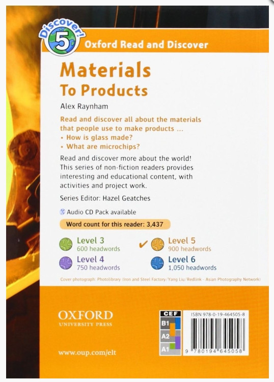 💳 Оплатить за товар можно при получении 🇰🇿 Есть бесплатная доставка по Казахстану от 1 дня 🎁 Копите бонусы с каждой покупки Серия: Oxford Read and Discover Прочтите и узнайте всё о материалах, которые используются для производства товаров. Как изготавливают стекло? Что такое микрочипы? |