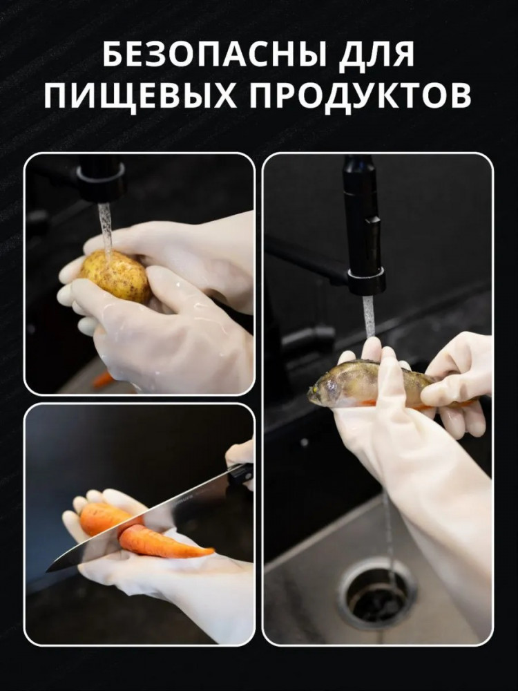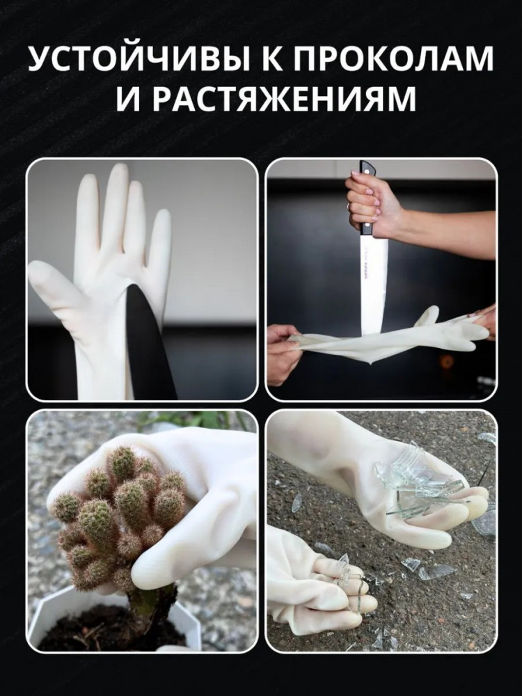 Шикарные перчатки. Впервые вижу перчатки, которые не рвутся после одной уборки. Покупала разные, там всегда одна-две уборки и начинают пропускать воду. А эти держатся уже несколько недель, ничего им не делается. Прекрасно мою в них овощи, очень удобно убирать колючки с огурцов в них. Супер классное качество