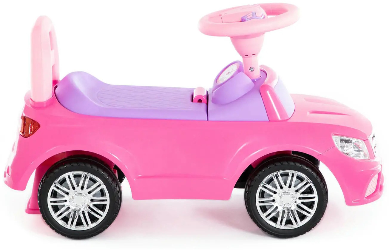 Фабрика «Полесье» представляет новую серию каталок SuperCar. Отличительной особенностью данной серии является реалистичный дизайн: имитация металлизированных поверхностей (диски, фары, радиаторная решётка). Кроме того, все каталки серии имеют музыкальный руль с кнопками для управления звуковыми эффектами. Конструкция предполагает наличие отделения для хранения мелочей, которое располагается под сиденьем. Также предусмотрен элемент, который позволит избежать опрокидывания. Каталки оснащены широкими колёсами, имеют удобное рулевое управление.