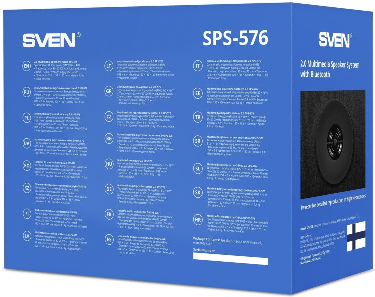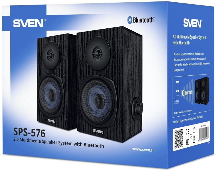Компактная настольная акустика — устройство далеко не такое простое, как может показаться на первый взгляд. Она должна сочетать небольшие размеры, удобство подключения и использования с хорошим звуком. Разработчики компании SVEN всегда понимали это, еще одним доказательством чего стала акустическая 2.0 система SPS-576. Кабельное подключение еще совсем недавно считалось самым востребованным для настольной акустики. Но времена меняются: сегодня практически у любого гаджета, включая ноутбуки, есть Bluetooth-модуль для беспроводного подключения, которое многие пользователи предпочитают за его удобство. SVEN SPS-576 подключается к источнику посредством Bluetooth — максимально просто и без лишних проводов. При этом питание осуществляется через USB: можно воспользоваться разъемами на ноутбуке или ПК, а можно предусмотреть отдельный источник питания — все в зависимости от предпочтений слушателя и сценариев использования. Для регулировки громкости предусмотрена крупная поворотная ручка на боковой панели правой колонки, которая легко находится на ощупь и очень удобна в использовании. При этом в данном случае мы имеем дело далеко не с акустикой, способной озвучить уведомления операционной системы или разговорные видео: благодаря солидному корпусу и двум динамикам она способна воспроизводить звук в диапазоне от 80 Гц до 20 кГц и обеспечивать приятное звучание. Оставаясь при этом крайне компактной: общий вес акустики чуть больше килограмма, а размеры каждой колонки — всего лишь 120×185×120 мм. Дизайн у SPS-576 при этом строгий, но оригинальный — радовать глаз она будет не меньше, чем слух.