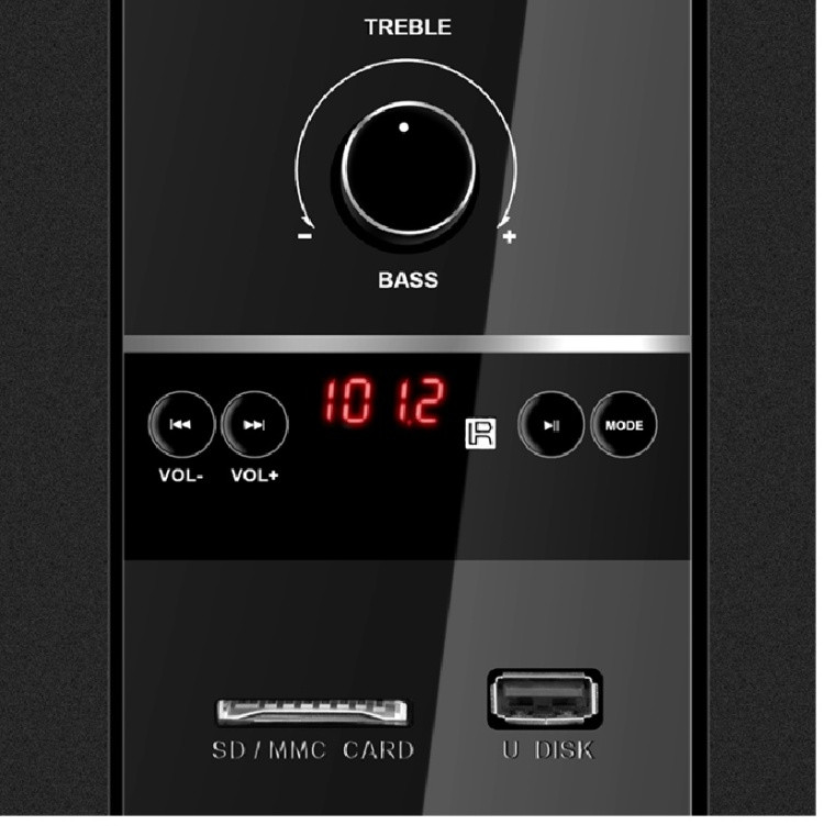 Беспроводная передача звука через Bluetooth обеспечит устойчивое подключение к гаджету на расстоянии до 10 м. Быстро включить фоновую музыку, послушать подкаст или аудиокнигу больше не проблема — достаточно один раз «познакомить» смартфон с акустической системой, после чего весь процесс будет занимать считанные секунды. Подборка любимых мелодий на USB-flash или SD карт памяти — прекрасный вариант для меломанов, уже сделавших свой выбор. Стабильное воспроизведение аудиофайлов без подключения дополнительных устройств. Не оказалось под рукой любимой коллекции треков? Не беда! Встроенное FM-радио с возможностью выбора частоты радиостанции на LED-экране поможет поддерживать хорошее настроение разнообразием мелодий круглые сутки. LED-дисплей информирует о частоте радиостанции, уровне громкости, времени трека при проигрывании с USB/SD. Панель управления позволяет находить трек по номеру, вводить частоту радиостанции, выбирать аудио вход и управлять множеством других функций. Регулировать громкость и изменять множество различных настроек акустической системы можно с помощью удобного пульта дистанционного управления.
