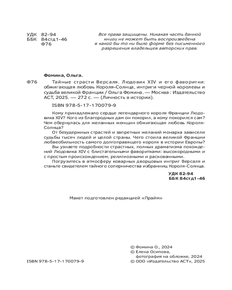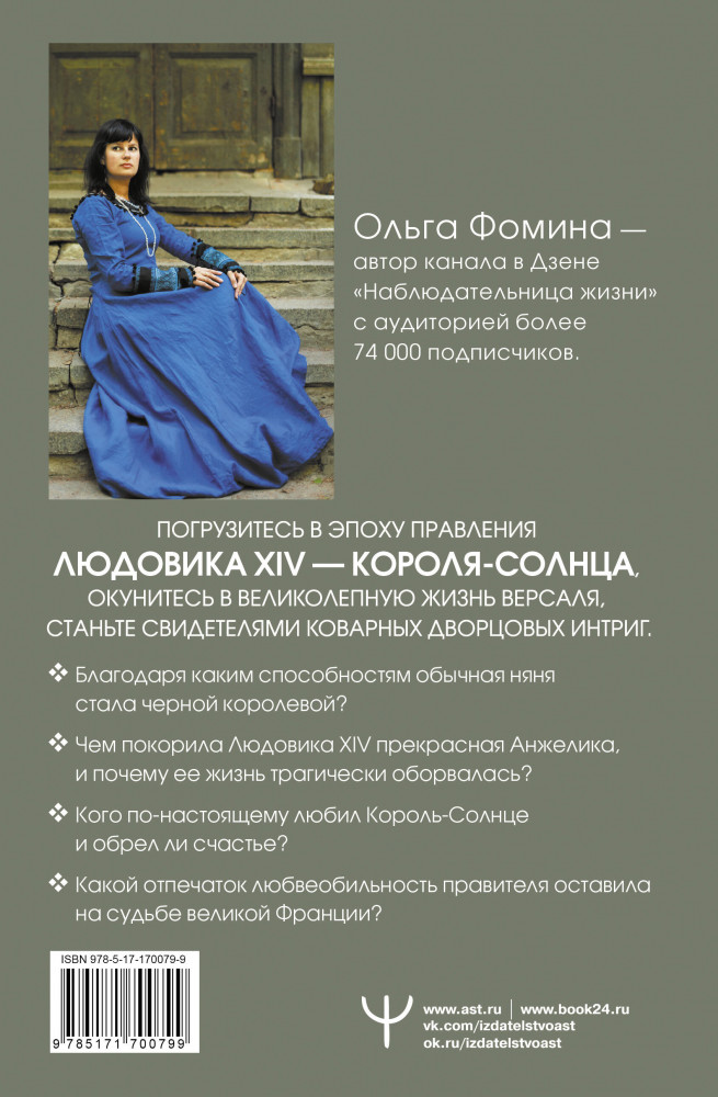 Серия: Личность в истории Ольга Фомина — автор канала в Дзене «Наблюдательница жизни» с аудиторией более 74 000 подписчиков. Кому принадлежало сердце легендарного короля Франции Людовика XIV? Кого из благородных дам он покорил, а кому покорился сам? Чем обернулась для желанных женщин обжигающая любовь Короля-Солнце? |