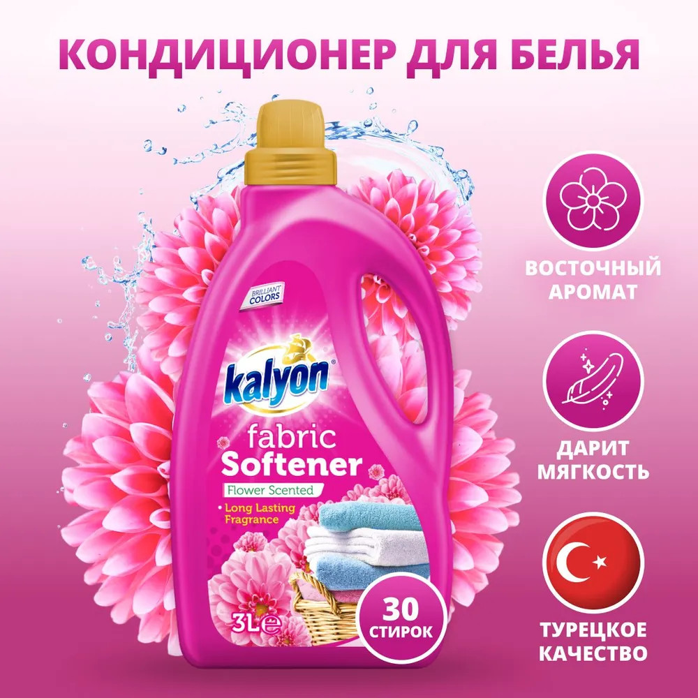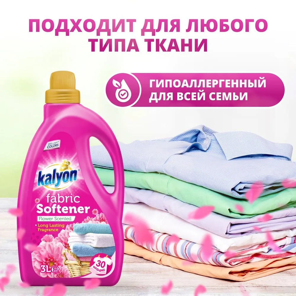 Кондиционер для стирки белья Kalyon станет незаменимым помощником в вашем домашнем хозяйстве. Это парфюмированное средство, обладающее тонким ароматом розы, разработано для придания вашим вещам исключительной мягкости и изящного аромата. Кондиционер не только улучшает тактильные ощущения ткани, но и имеет антистатический эффект, что значительно облегчает процесс глажки и предотвращает накопление статического электричества. Приятный аромат свежих цветов, остающийся на белье после стирки, создает атмосферу уюта и чистоты в вашем доме. Кондиционер бережно заботится о тканях, сохраняя их первоначальный вид и продлевая срок службы ваших вещей. Его экономичный объем хватает на длительное время, что делает его использованием удобным и выгодным. Средство легко справляется с жесткостью воды, благодаря чему ваши любимые вещи становятся еще мягче и приятнее на ощупь. Подходит для использования как в ручной, так и в машинной стирке. Попробуйте кондиционер для стирки белья Kalyon и подарите своим текстильным изделиям свежесть, мягкость и утонченный аромат розы при каждой стирке.