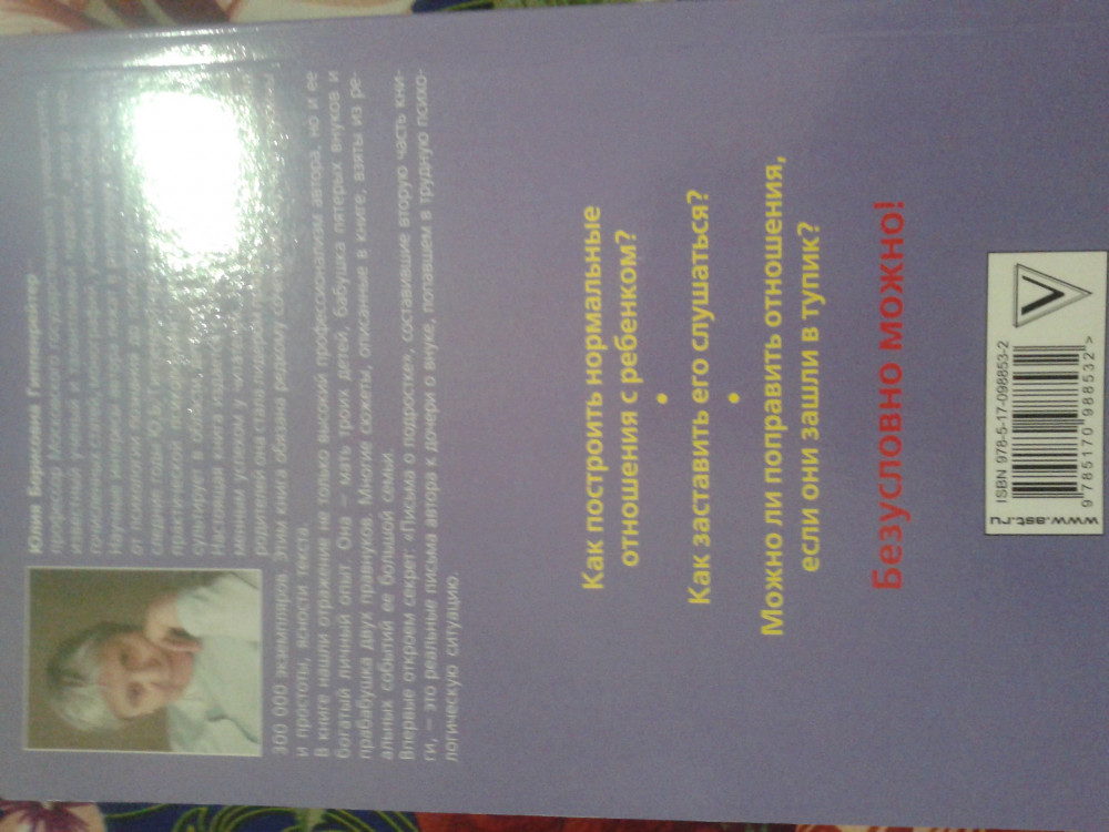 В первый вечер, после покупки, прочитала большую часть книги, потому как замечательная автор, Юлия Борисовна, не только гениальный психолог, но и гениальный писатель. Очень важная и серьезная информация - очень доступно и легко подана автором. И самое важное, даны не общие, расплывчатые советы, а точные рекомендации, вплоть до указания фраз общения с ребенком. Я поняла, как мы, родители, неправильно ведем беседы со своими детьми. Рекомендую к прочтению всем. Это гениальная автор!