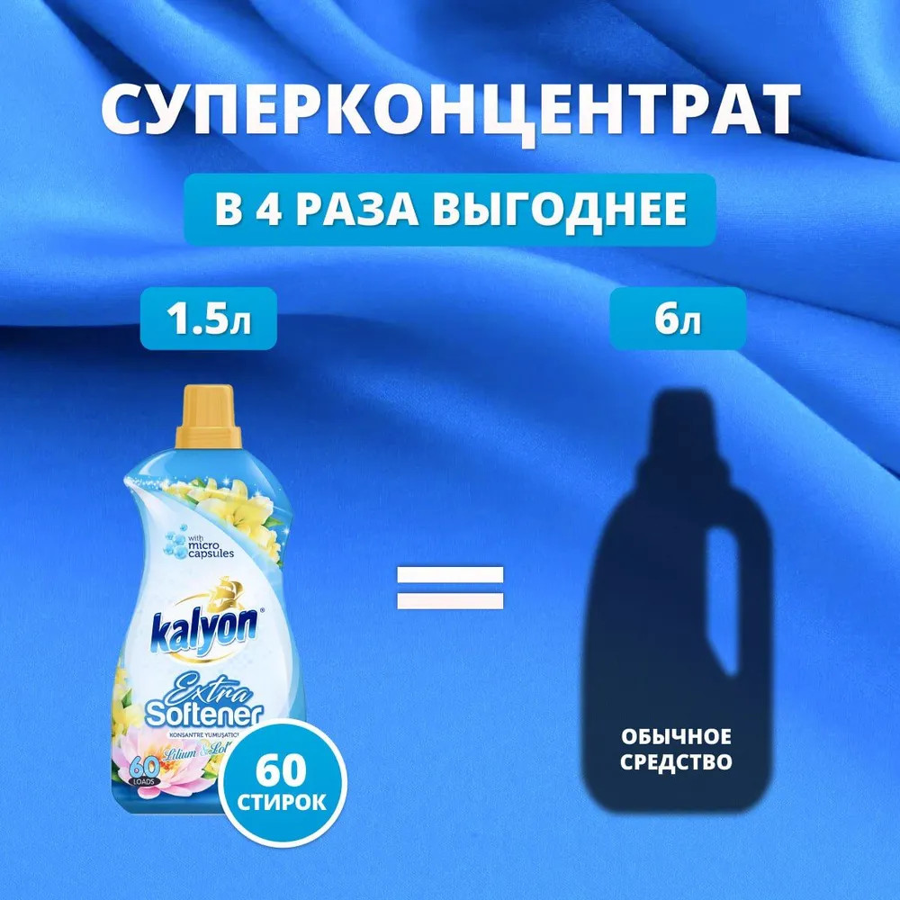 Погрузитесь в мир нежности и свежести с нашим турецким кондиционером для белья Kalyon! Наш кондиционер для белья не просто стирает, а создаёт настоящий опыт для ваших чувств. После каждой стирки ваша одежда не только обретает мягкость, но и окутывается длительным и утончённым ароматом турецких Белых цветков.
