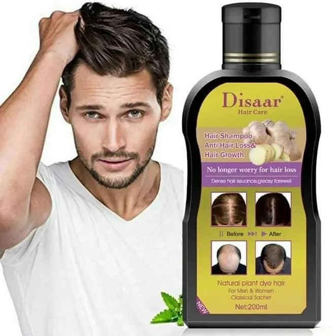 Шампунь Disaar (200 мл) от выпадения волос для ежедневного использования подходит как для мужчин, так и для женщин. Он мягко очищает волосы, поддерживает баланс кожи головы и предотвращает преждевременное выпадение волос. Шампунь содержит био-активные питательные вещества и природные травяные компоненты, такие как корень имбиря, женьшень, китайский рунический цветок и масло виноградных косточек, которые улучшают состояние волос и кожи головы. Прокапил в составе укрепляет волосы, улучшает кровоснабжение и питает волосяные луковицы, снижая воздействие гормонов на волосы. Трикорексин стимулирует восстановление волос и ускоряет их рост. Для применения рекомендуется нанести несколько капель шампуня на корни волос, помассировать, закутать голову и оставить на некоторое время, затем смыть теплой водой. Для усиленного действия можно добавить 3 мл средства в 100 мл шампуня. Противопоказания — индивидуальная непереносимость компонентов.