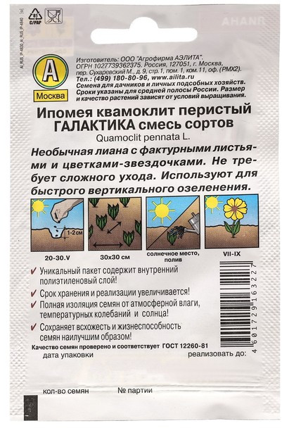 Аэлита Ипомея, смесь сортов «Квамоклит Галактика»+8