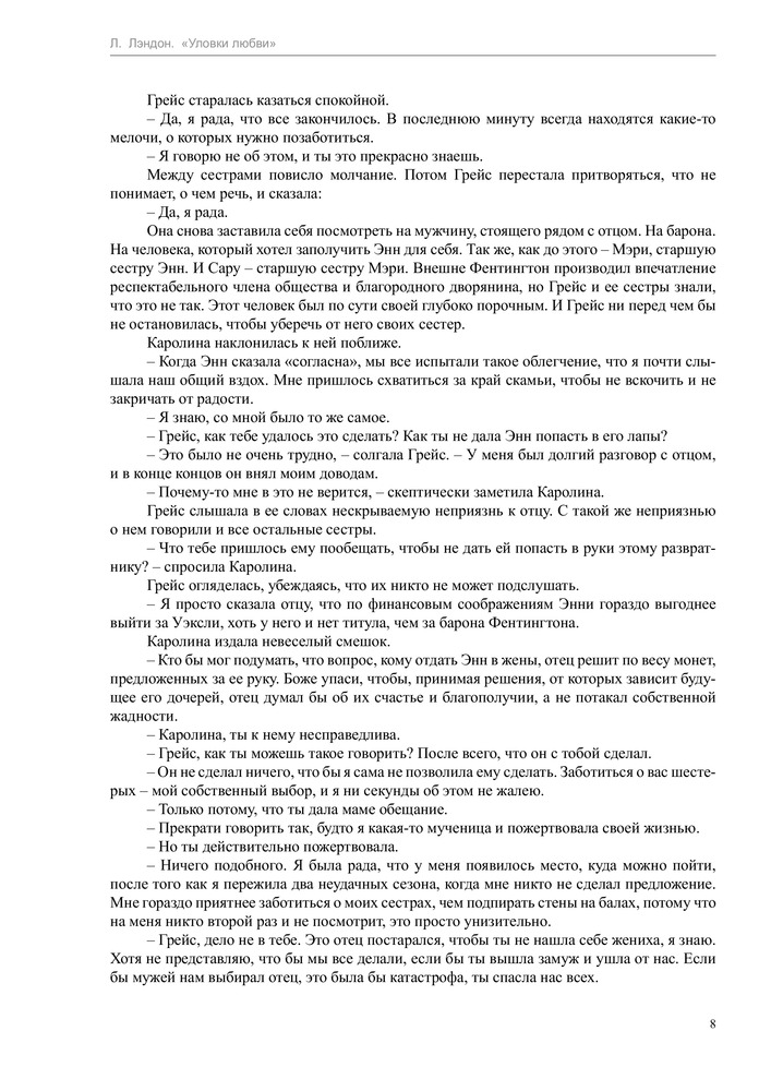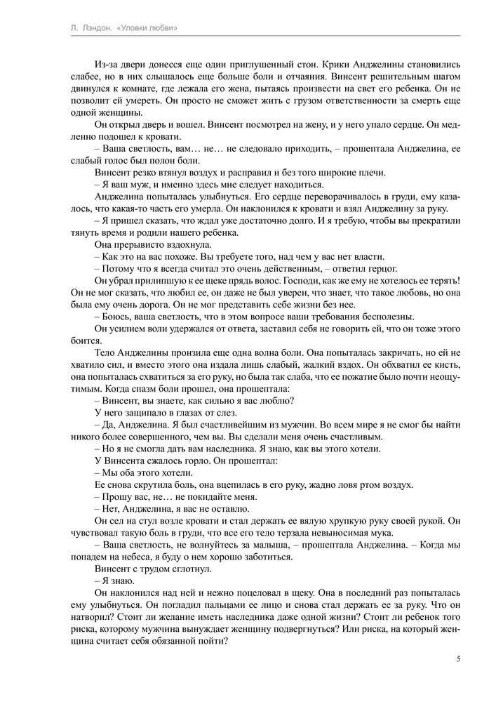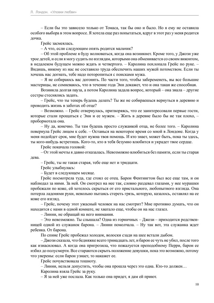 Уловки любвиВ данный момент этот товар отсутствует в продаже. Возможно, у нас найдется аналогичный или похожий товар здесь. Серия: Шарм В викторианской Англии не принято жениться на девушке с погубленной репутацией. Однако леди Грейс Уоррен готова на все, чтобы избежать неминуемого брака по расчету. Здесь нужен коварный обольститель, и разумеется, это будет кумир столичных куртизанок Винсент Жермен, граф Рейборн. Однако Грейс ошиблась. Под маской прожигателя жизни таится истинный джентльмен, сразу заподозривший, что таинственная незнакомка, с которой он провел ночь, – явно не та, за кого себя выдает. Граф пускается на поиски загадочной красавицы, чтобы вернуть «поруганной жертве» утраченную честь. Только чудо может спасти брак, порожденный нелепой ошибкой. Но истинная любовь, не признающая ни логики, ни доводов разума, способна творить чудеса... |