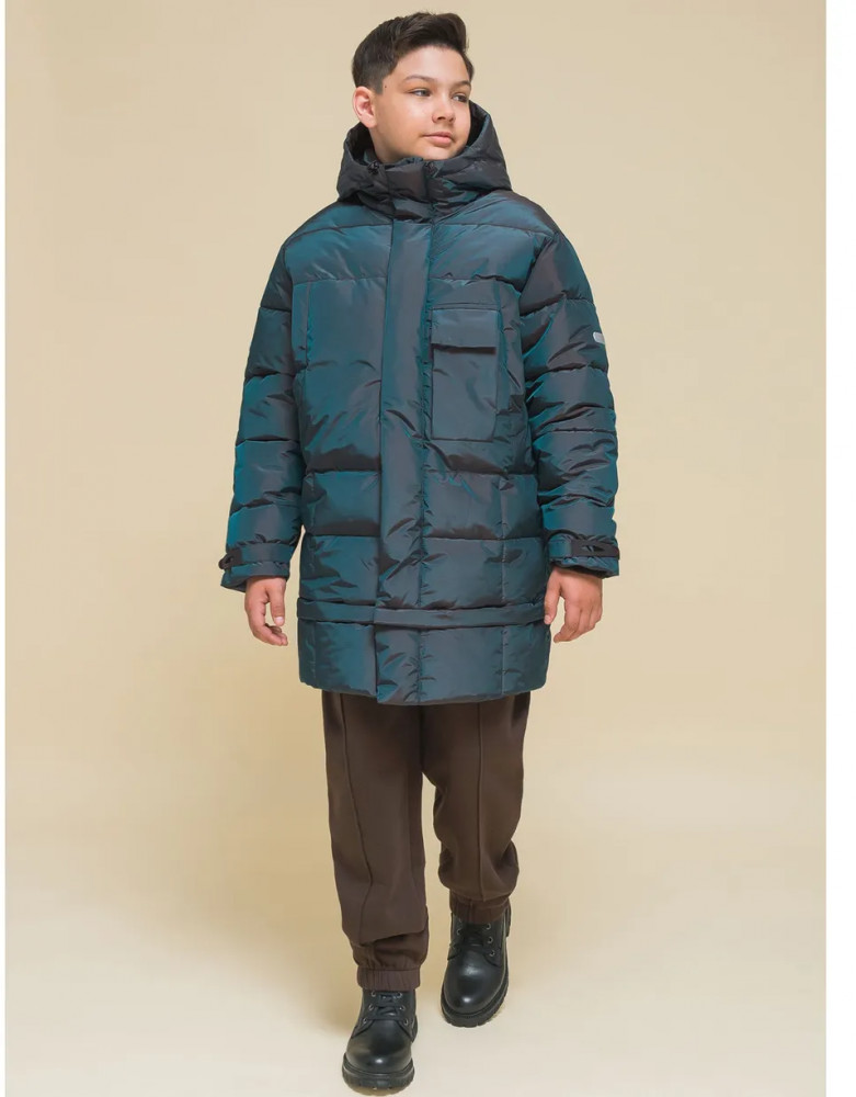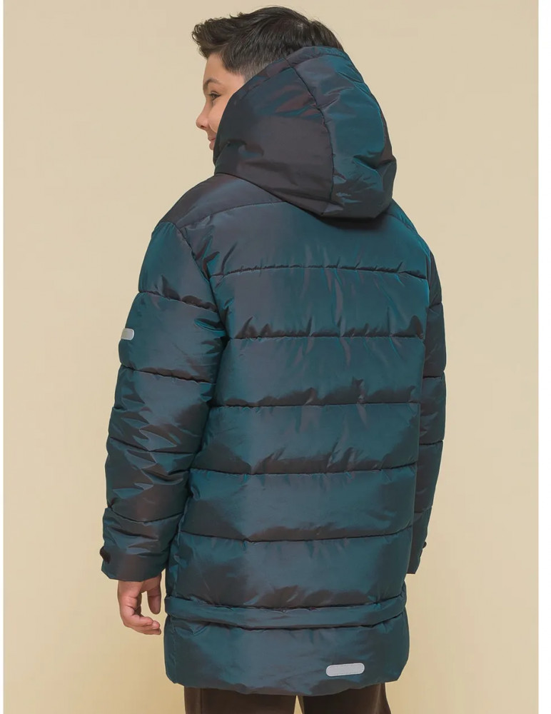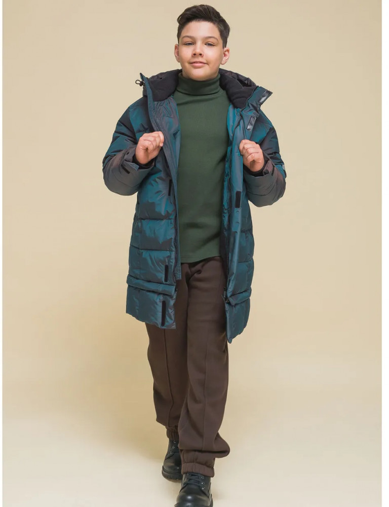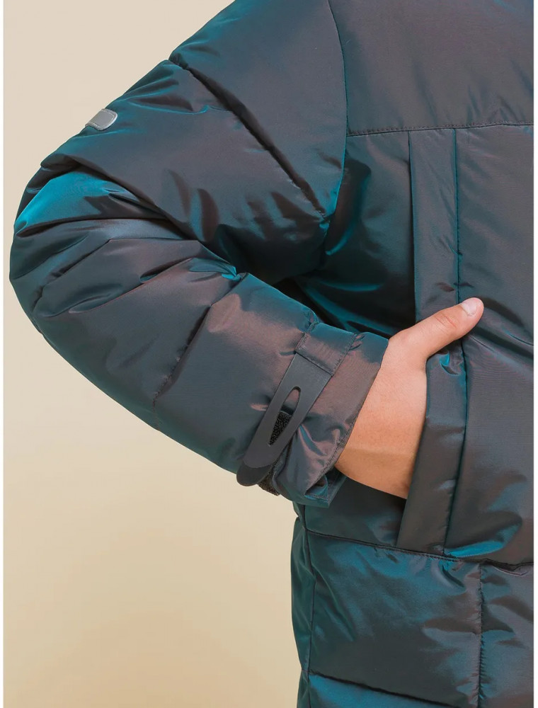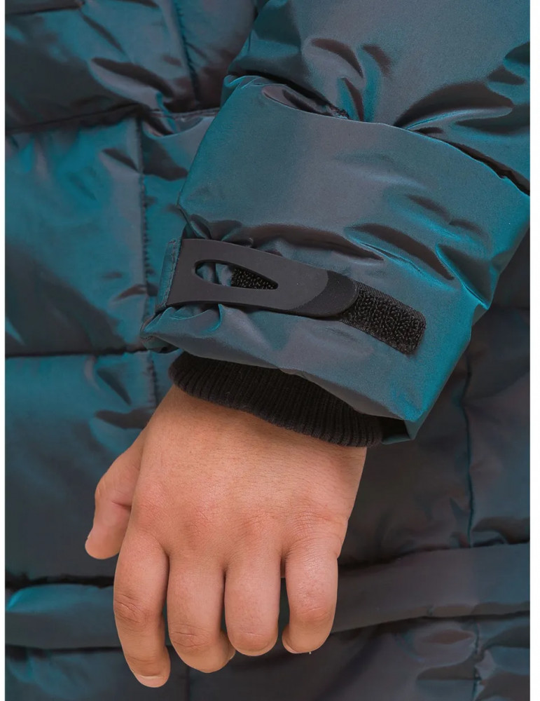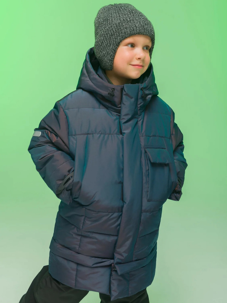 Пуховик на мальчика спереди на груди дополнен прорезными карманами с магнитными застёжками — ребёнку просто и быстро открывать и закрывать даже в варежках. Карманы скрыты вертикальными планками, внутри утеплены мягким флисом. Также на груди есть накладной карман на липучке (велкро) для хранения телефона — удобно пользоваться. В каждой куртке нейм-лейбл! Ребёнок не потеряется и не потеряет куртку! На спинке и в боковых швах расположены светоотражающие элементы — безопасность в тёмное время суток. За иделием просто ухаживать. Пуховик без принтов. Выполнен из нейлона и полиэстера (+мембраны) — он тёплый, не промокает, легко стирается, быстро сохнет, сохраняет отличную форму и цвет надолго. Подкладка из мягкого, тёплого и дышащего флиса (по стану, внутреннему воротнику и в капюшоне). В рукавах подкладка из тонкого полиэстера — благодаря этому ребенку легко надевать куртку, руки не путаются в рукавах. Куртка выполнена в цвете хамелеон, меняющая цвет от зеленого до черного. Она легко комбинируется с разнообразными брюками. Куртка зимняя оверсайз подходит для маленьких мальчиков дошкольного и младшего школьного возраста, а также подростков. Рекомендуемый температурный режим: не ниже минус 30 градусов. Утеплитель: экопух. В рукавах дополнительный слой тонкого синтепона. Куртка на мальчика — отличный подарок для сына или внука на любой праздник.
