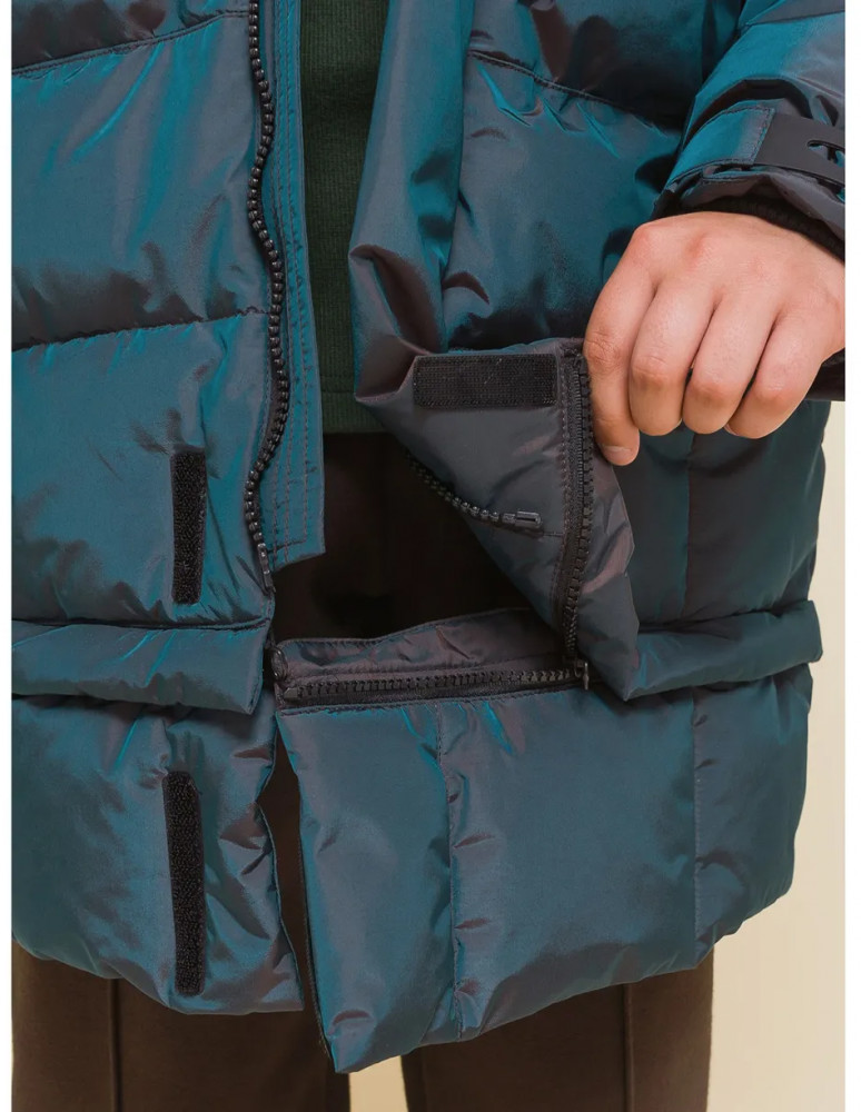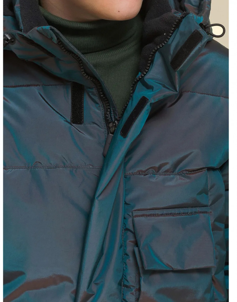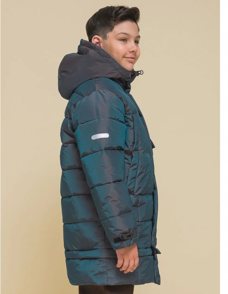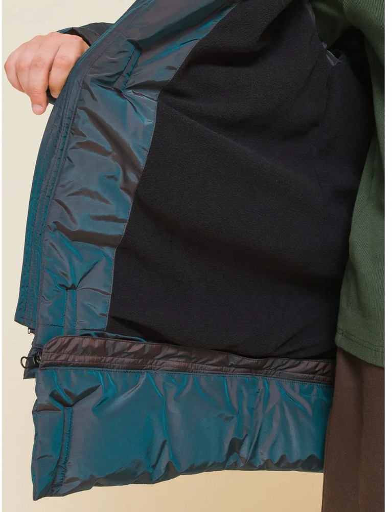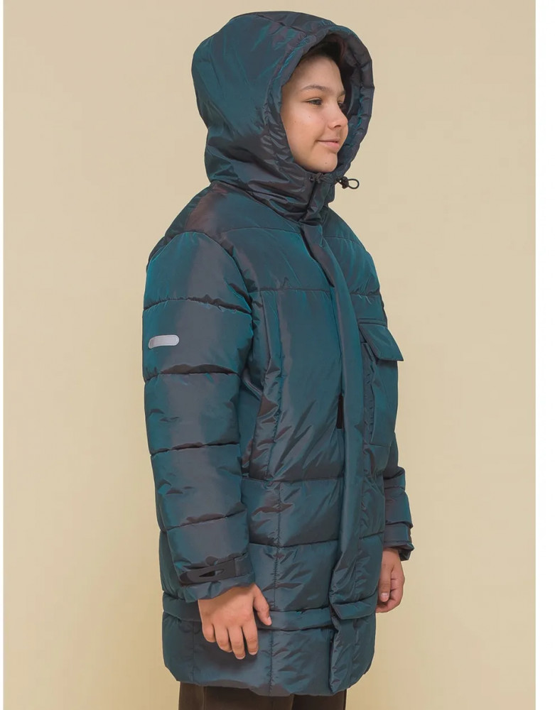 Пуховик на мальчика спереди на груди дополнен прорезными карманами с магнитными застёжками — ребёнку просто и быстро открывать и закрывать даже в варежках. Карманы скрыты вертикальными планками, внутри утеплены мягким флисом. Также на груди есть накладной карман на липучке (велкро) для хранения телефона — удобно пользоваться. В каждой куртке нейм-лейбл! Ребёнок не потеряется и не потеряет куртку! На спинке и в боковых швах расположены светоотражающие элементы — безопасность в тёмное время суток. За иделием просто ухаживать. Пуховик без принтов. Выполнен из нейлона и полиэстера (+мембраны) — он тёплый, не промокает, легко стирается, быстро сохнет, сохраняет отличную форму и цвет надолго. Подкладка из мягкого, тёплого и дышащего флиса (по стану, внутреннему воротнику и в капюшоне). В рукавах подкладка из тонкого полиэстера — благодаря этому ребенку легко надевать куртку, руки не путаются в рукавах. Куртка выполнена в цвете хамелеон, меняющая цвет от зеленого до черного. Она легко комбинируется с разнообразными брюками. Куртка зимняя оверсайз подходит для маленьких мальчиков дошкольного и младшего школьного возраста, а также подростков. Рекомендуемый температурный режим: не ниже минус 30 градусов. Утеплитель: экопух. В рукавах дополнительный слой тонкого синтепона. Куртка на мальчика — отличный подарок для сына или внука на любой праздник.
