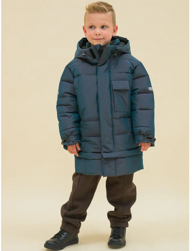 Пуховик на мальчика спереди на груди дополнен прорезными карманами с магнитными застёжками — ребёнку просто и быстро открывать и закрывать даже в варежках. Карманы скрыты вертикальными планками, внутри утеплены мягким флисом. Также на груди есть накладной карман на липучке (велкро) для хранения телефона — удобно пользоваться. В каждой куртке нейм-лейбл! Ребёнок не потеряется и не потеряет куртку! На спинке и в боковых швах расположены светоотражающие элементы — безопасность в тёмное время суток. За иделием просто ухаживать. Пуховик без принтов. Выполнен из нейлона и полиэстера (+мембраны) — он тёплый, не промокает, легко стирается, быстро сохнет, сохраняет отличную форму и цвет надолго. Подкладка из мягкого, тёплого и дышащего флиса (по стану, внутреннему воротнику и в капюшоне). В рукавах подкладка из тонкого полиэстера — благодаря этому ребенку легко надевать куртку, руки не путаются в рукавах. Куртка выполнена в цвете хамелеон, меняющая цвет от зеленого до черного. Она легко комбинируется с разнообразными брюками. Куртка зимняя оверсайз подходит для маленьких мальчиков дошкольного и младшего школьного возраста, а также подростков. Рекомендуемый температурный режим: не ниже минус 30 градусов. Утеплитель: экопух. В рукавах дополнительный слой тонкого синтепона. Куртка на мальчика — отличный подарок для сына или внука на любой праздник.