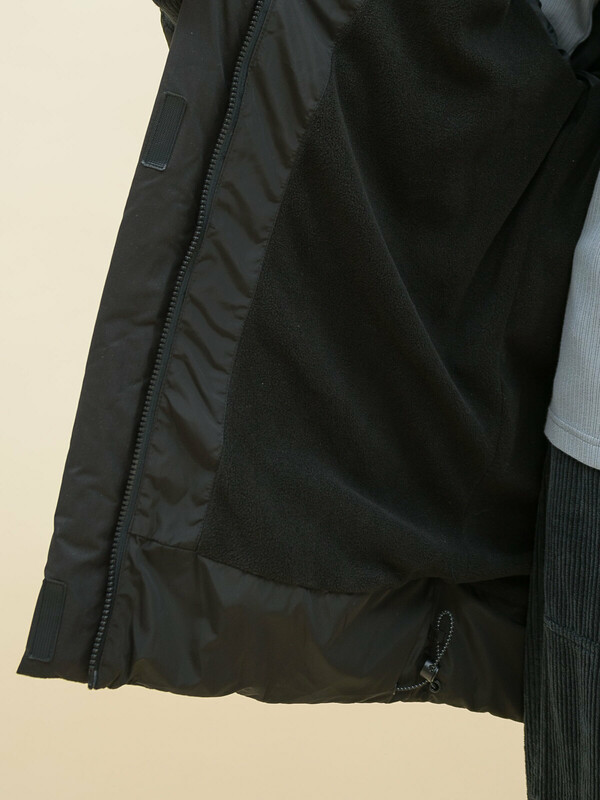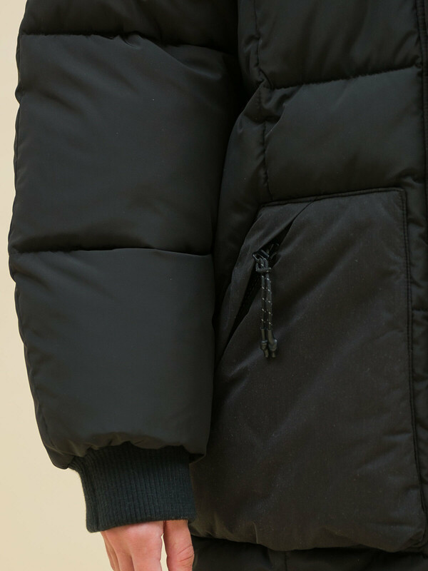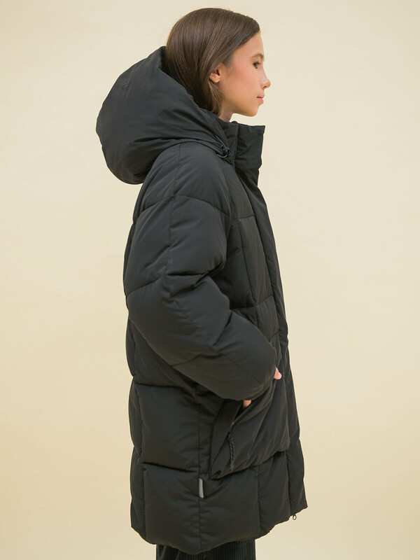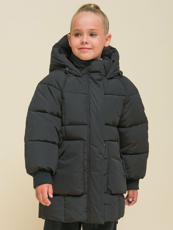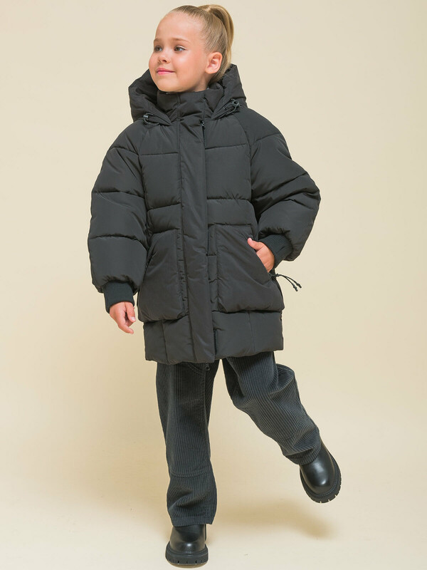 Куртка зимняя оверсайз для девочки. Изделие выполнено из комбинации двух видов ткани: блестящей и матовой (эпонж — шелковистая ткань с шероховатой поверхностью). Эпонж благодаря своей текстуре практически не впитывает влагу и быстро сохнет — ребёнок не промокнет. Водоотталкивающая пропитка (DWR) нанесена на внешнюю поверхность ткани и задерживает грязь и влагу снаружи. Также есть дополнительная пропитка на внутренней стороне ткани. Рукава кроя реглан образуют мягкую и плавную линию плеча. Куртка классического прямого силуэта подходит для любого типа фигуры. Капюшон не отстегивается, предусмотрена регулировка объема эластичными шнурами с пластиковыми стопперами. Изюминка модели — капюшон на молнии, которую можно расстегнуть и разложить по плечам. Ширина горловины позволяет надевать свитер с объёмным воротником или объёмный шарф. Манжеты рукавов из эластичной рибаны (ткань в рубчик) — дополнительная защита от холода и ветра, рибана хорошо тянется и при этом надолго сохраняет отличную форму. Центральная застёжка на тракторную молнию, разъёмную с двух сторон — удобно садиться. Тканевый стоппер защищает подбородок от зажима молнией. Фиксирующая строчка предохраняет планку от «заедания» в процессе застёгивания. Куртка тёплая — дополнительно, для защиты от ветра и холода, центральная молния закрыта ветрозащитной планкой на липучках (велкро). Высокотехнологичные липучки нового образца не цепляются к одежде и не нуждаются в постоянной чистке от ворсинок. По низу объём изделия регулируется эластичным шнуром со стопперами. Куртка стёганая спереди дополнена накладными карманами с удобным наклонным входом. Карманы внутри утеплены флисом, закрываются на тракторную молнию. На всех пуллерах эластичные шнуры с запаянными наконечниками — ребёнку легко открывать и закрывать даже в варежках. В каждой куртке нейм-лейбл! Ребёнок не потеряется и не потеряет куртку! На спинке и в боковых швах расположены светоотражающие элементы — безопасность в тёмное время суток. За изделием легко ухаживать. Модель без принта. Куртка выполнена из полиэстера (+мембраны) — она тёплая, не промокает, легко стирается, быстро сохнет, сохраняет отличную форму и цвет надолго. Подкладка из мягкого, тёплого и дышащего флиса (по стану, внутреннему воротнику и в капюшоне). В рукавах подкладка из полиэстера — благодаря этому ребенку легко надевать куртку, руки не путаются в рукавах. Куртка выполнена из материала классического чёрного цвета. Её просто комбинировать с различными брюками, юбками, колготками.