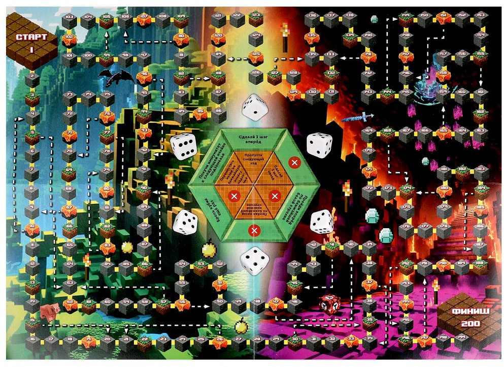 💳 Оплатить за товар можно при получении 🇰🇿 Есть бесплатная доставка по Казахстану от 1 дня 🎁 Копите бонусы с каждой покупки Настольная игра-ходилка в треугольной коробке «По мотивам MINECRAFT» ТМ «Умные игры» — увлекательная игра, в которой можно стать героем виртуальной Вселенной! |
