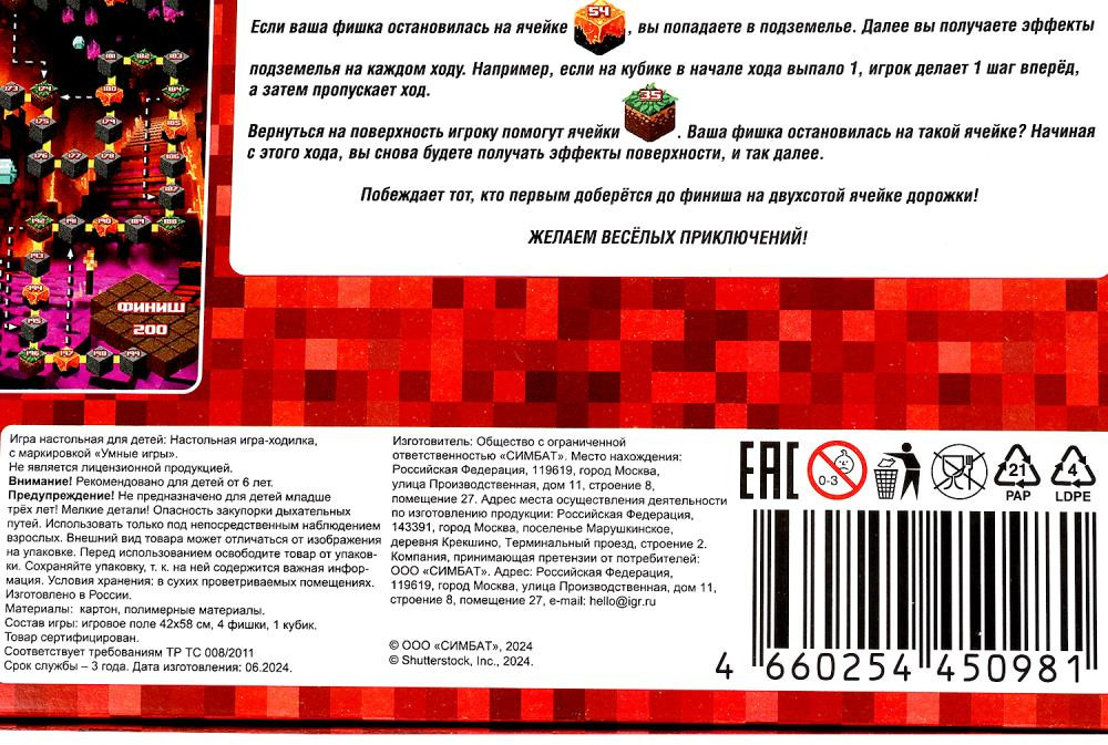 Умные игры Игра-ходилка настольная «По мотивам Minecraft»-35% +40