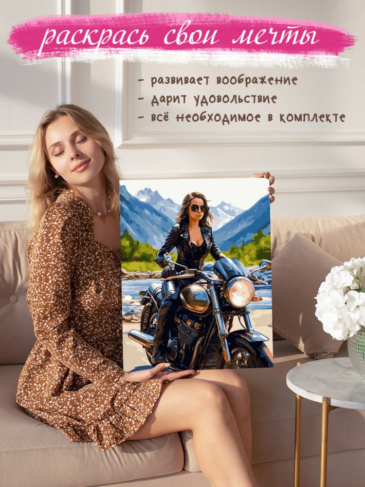 Арт Фея Картина по номерам «Девушка-байкер»-25% +167