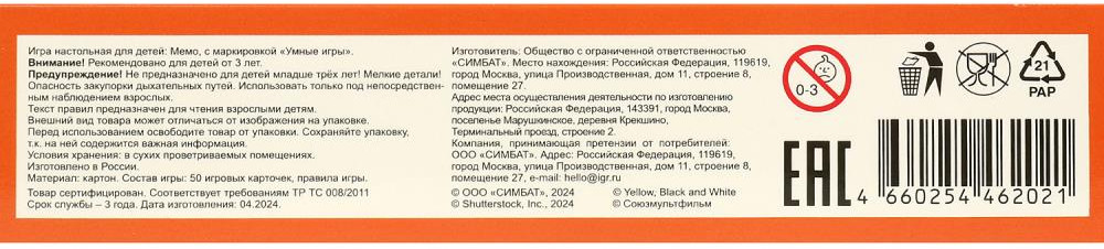 | Умные игры Карточная игра - мемо 2 в 1 «Чебурашка»+18 (бонусов)
