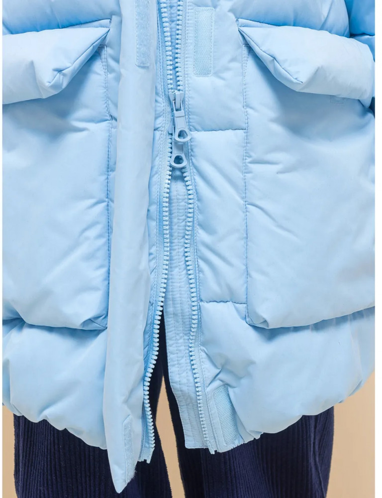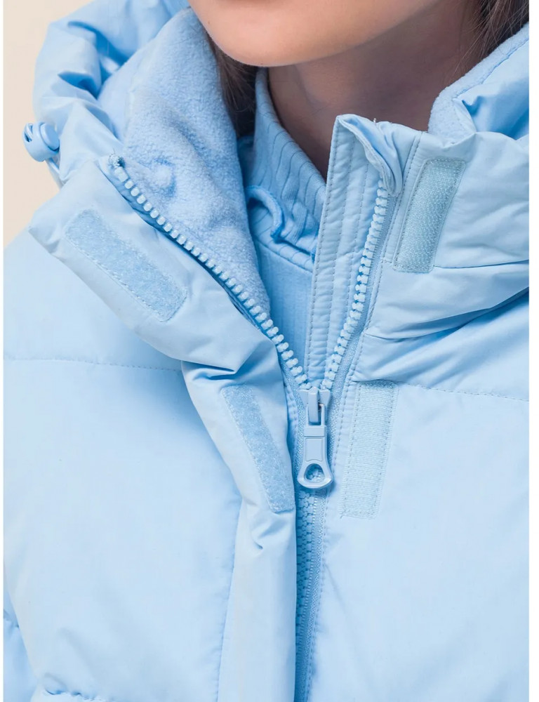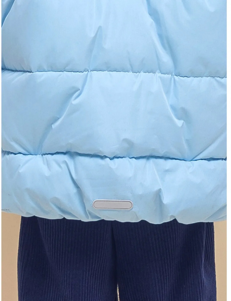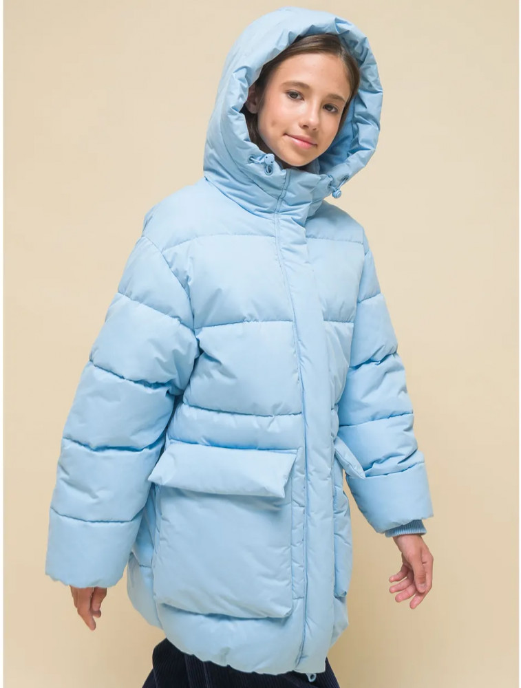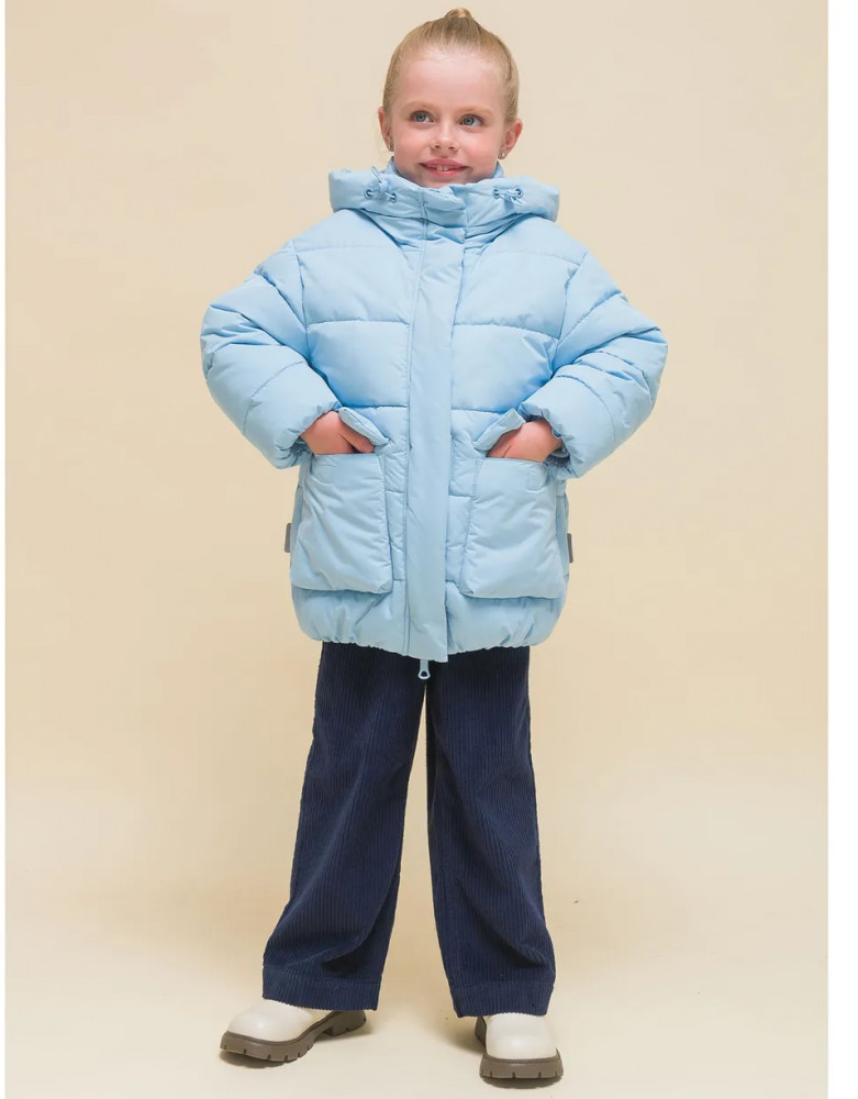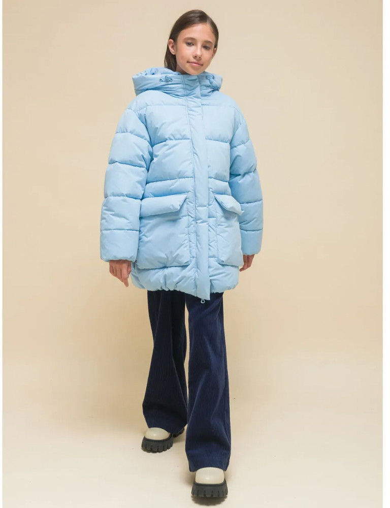Куртка тёплая — дополнительно, для защиты от ветра и холода, центральная молния закрыта ветрозащитной планкой на липучках (велкро). По низу объём изделия регулируется эластичным шнуром со стопперами — можно менять силуэт изделия. Куртка стёганая спереди дополнена накладными карманами с клапанами, которые закрываются на магнит — ребёнку просто и быстро открывать и закрывать даже в варежках. Карманы внутри утеплены мягким флисом. В каждой куртке нейм-лейбл! Ребёнок не потеряется и не потеряет куртку! На спинке и в боковых швах расположены светоотражающие элементы — безопасность в тёмное время суток. Изделие неприхотливо в уходе. Пуховик без принта. Куртка выполнена из полиэстера (+мембраны) — она тёплая, не промокает, легко стирается, быстро сохнет, сохраняет отличную форму и цвет надолго. Подкладка из мягкого, тёплого и дышащего флиса (по стану, внутреннему воротнику и в капюшоне). В рукавах подкладка из полиэстера — благодаря этому ребенку легко надевать куртку, руки не путаются в рукавах. Куртка выполнена в голубом цвете. Её просто комбинировать с различными брюками, юбками, колготками. Куртка зимняя оверсайз идеальна для маленьких девочек дошкольного и младшего школьного возраста, а также девочек-подростков. Рекомендуемый температурный режим: не ниже минус 30 градусов. Утеплитель: экопух. В рукавах дополнительный слой тонкого синтепона. Модель подходит для носки в детский сад, школу, для прогулок и отдыха.