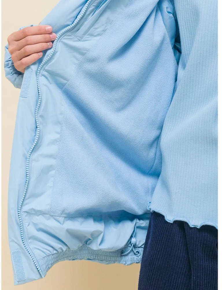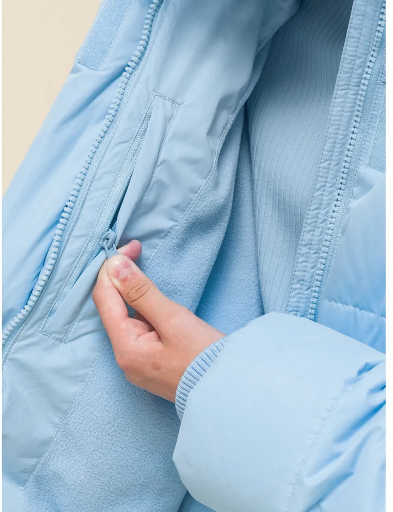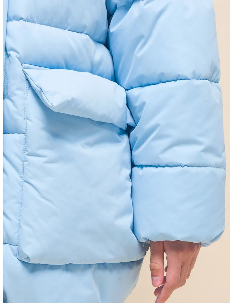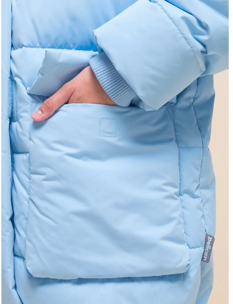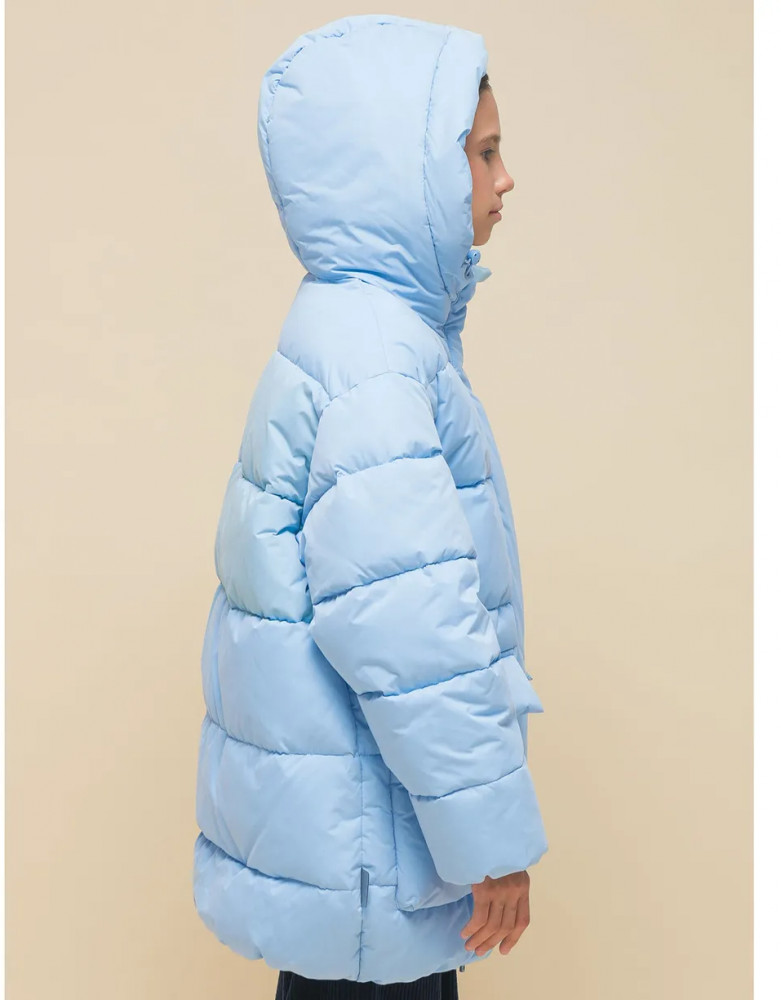 Куртка тёплая — дополнительно, для защиты от ветра и холода, центральная молния закрыта ветрозащитной планкой на липучках (велкро). По низу объём изделия регулируется эластичным шнуром со стопперами — можно менять силуэт изделия. Куртка стёганая спереди дополнена накладными карманами с клапанами, которые закрываются на магнит — ребёнку просто и быстро открывать и закрывать даже в варежках. Карманы внутри утеплены мягким флисом. В каждой куртке нейм-лейбл! Ребёнок не потеряется и не потеряет куртку! На спинке и в боковых швах расположены светоотражающие элементы — безопасность в тёмное время суток. Изделие неприхотливо в уходе. Пуховик без принта. Куртка выполнена из полиэстера (+мембраны) — она тёплая, не промокает, легко стирается, быстро сохнет, сохраняет отличную форму и цвет надолго. Подкладка из мягкого, тёплого и дышащего флиса (по стану, внутреннему воротнику и в капюшоне). В рукавах подкладка из полиэстера — благодаря этому ребенку легко надевать куртку, руки не путаются в рукавах. Куртка выполнена в голубом цвете. Её просто комбинировать с различными брюками, юбками, колготками. Куртка зимняя оверсайз идеальна для маленьких девочек дошкольного и младшего школьного возраста, а также девочек-подростков. Рекомендуемый температурный режим: не ниже минус 30 градусов. Утеплитель: экопух. В рукавах дополнительный слой тонкого синтепона. Модель подходит для носки в детский сад, школу, для прогулок и отдыха.