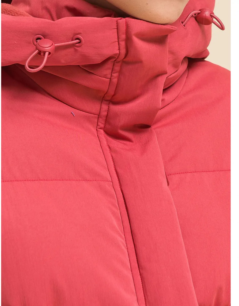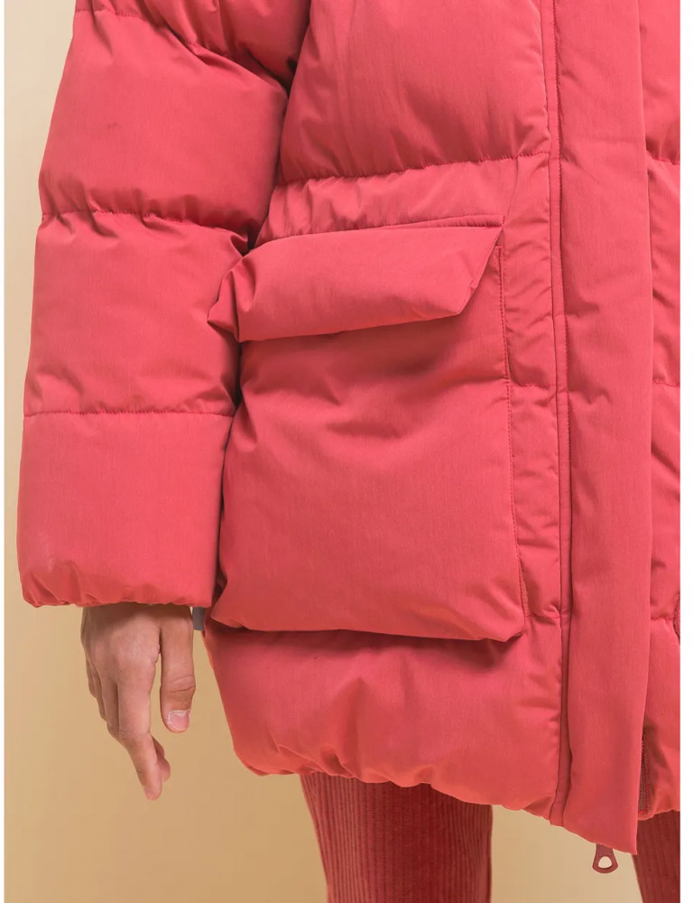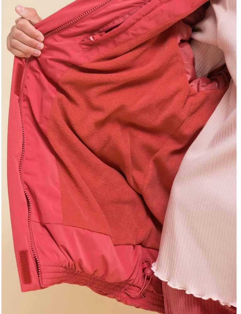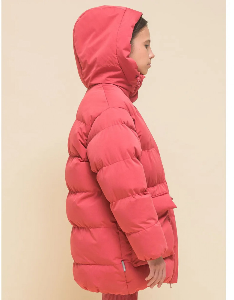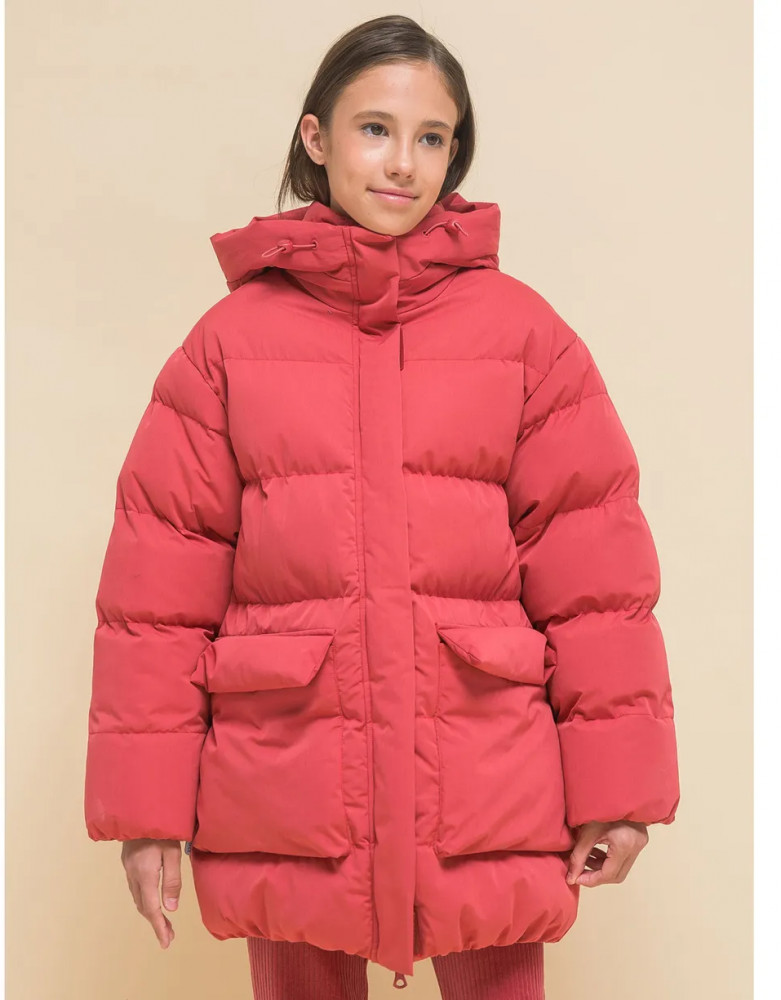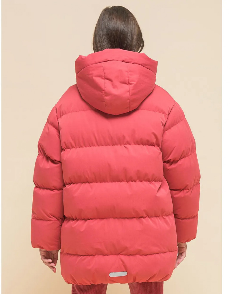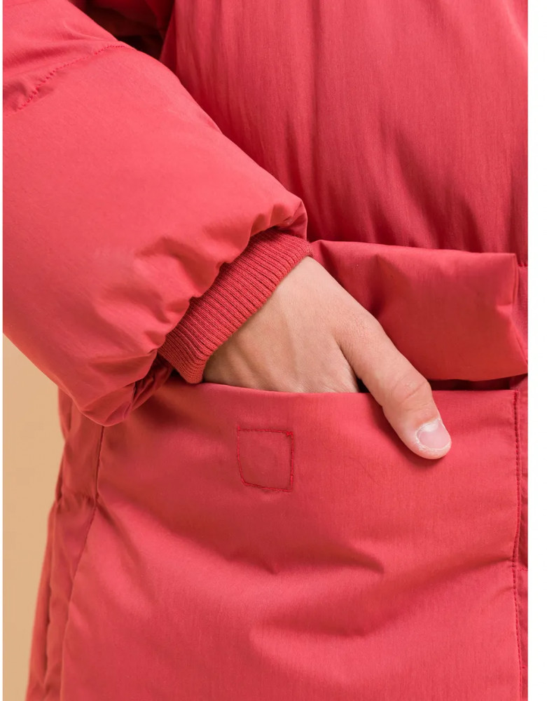 Куртка выполнена из полиэстера (+мембраны) — она тёплая, не промокает, легко стирается, быстро сохнет, сохраняет отличную форму и цвет надолго. Подкладка из мягкого, тёплого и дышащего флиса (по стану, внутреннему воротнику и в капюшоне). В рукавах подкладка из полиэстера — благодаря этому ребенку легко надевать куртку, руки не путаются в рукавах. Куртка выполнена в красном цвете. Её просто комбинировать с различными брюками, юбками, колготками. Куртка зимняя оверсайз идеальна для маленьких девочек дошкольного и младшего школьного возраста, а также девочек-подростков. Рекомендуемый температурный режим: не ниже минус 30 градусов. Утеплитель: экопух. В рукавах дополнительный слой тонкого синтепона. Модель подходит для носки в детский сад, школу, для прогулок и отдыха.